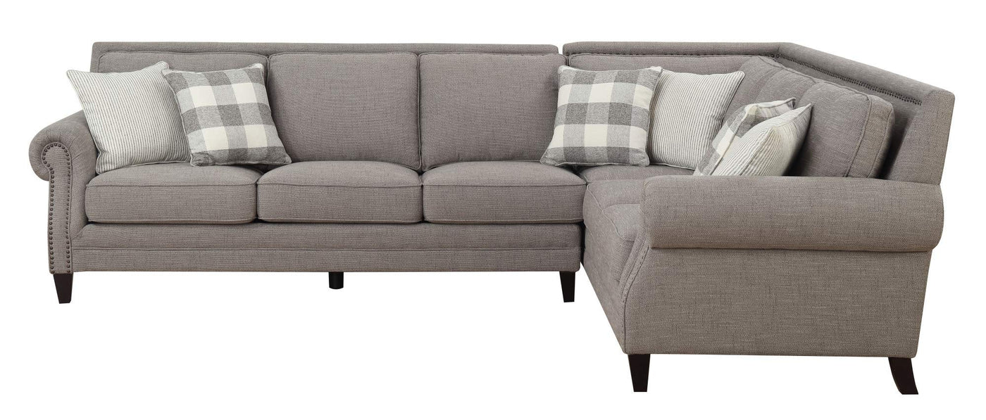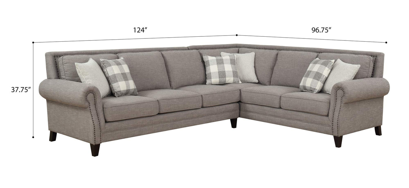 Madrona Burke Caroline Pebble Brown Sectional with Rolled Arms, Turned Feet, and Nailhead Trim