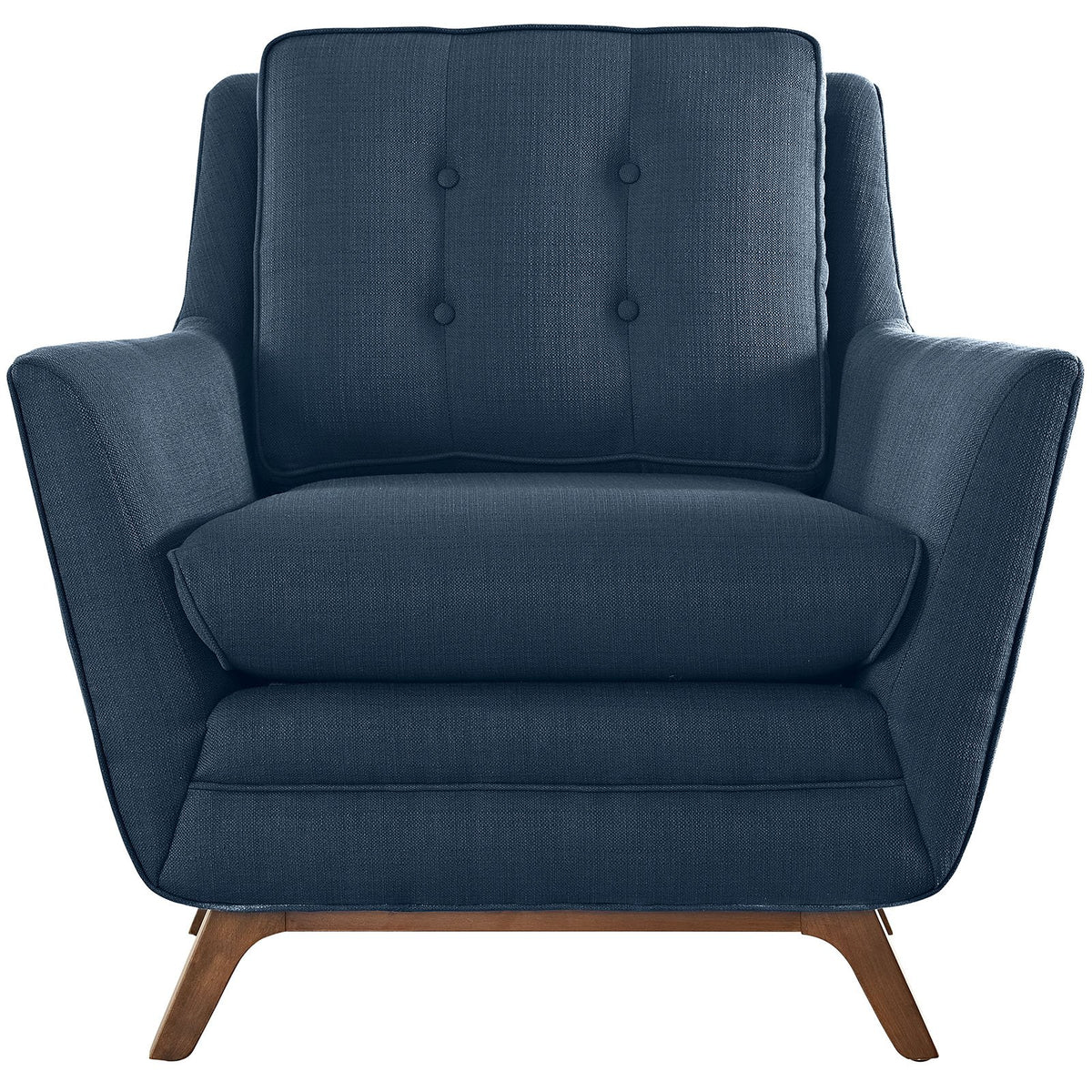 Modway Beguile Mid-Century Modern Accent Arm Lounge Chair With Upholstered Fabric In Azure