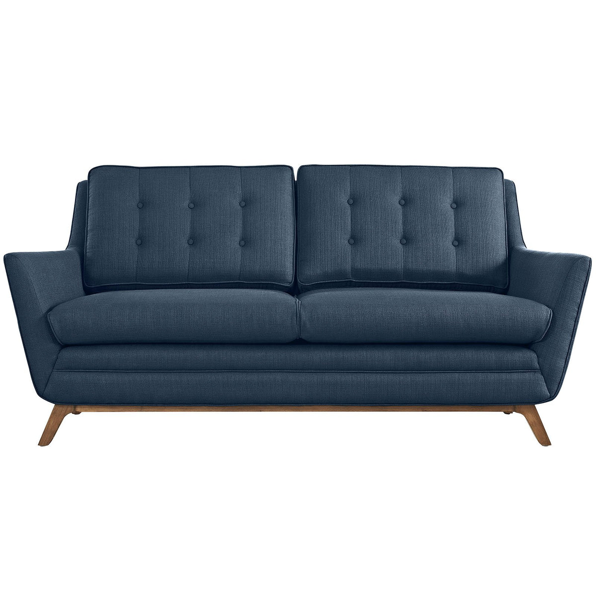 Modway Beguile Mid-Century Modern Loveseat With Upholstered Fabric In Azure