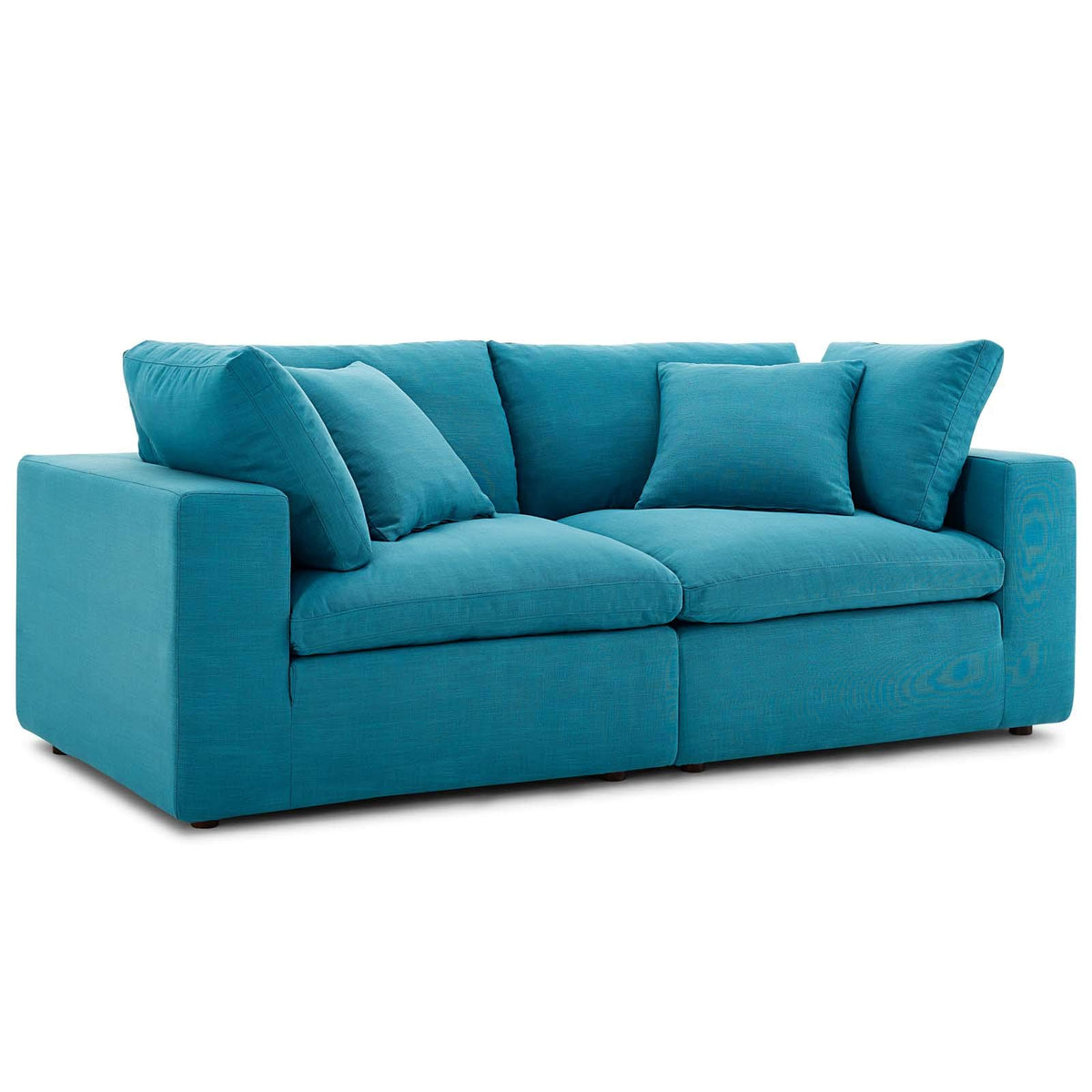 Modway Commix Down Down Filled Overstuffed 2 Piece Sectional Sofa Set, Two Corner Chairs, Teal