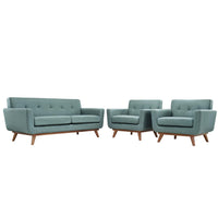 Modway Engage Mid-Century Modern Upholstered Fabric Two Armchair And Loveseat Set In Laguna