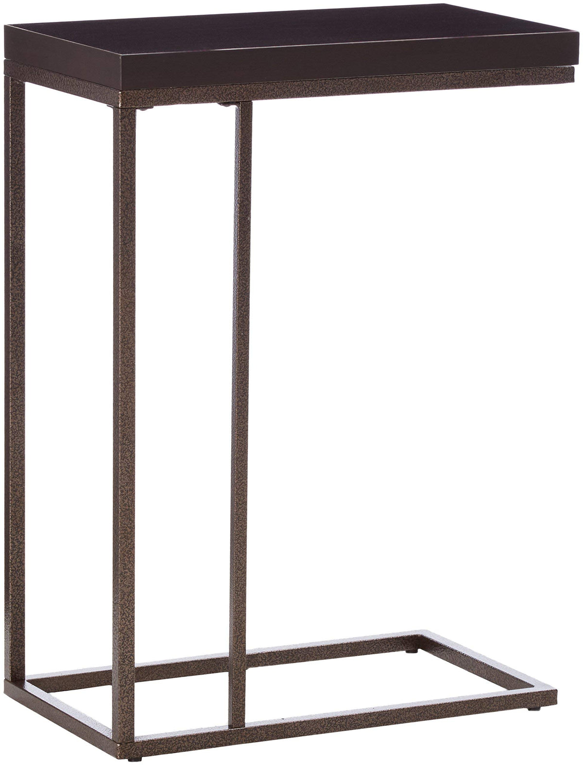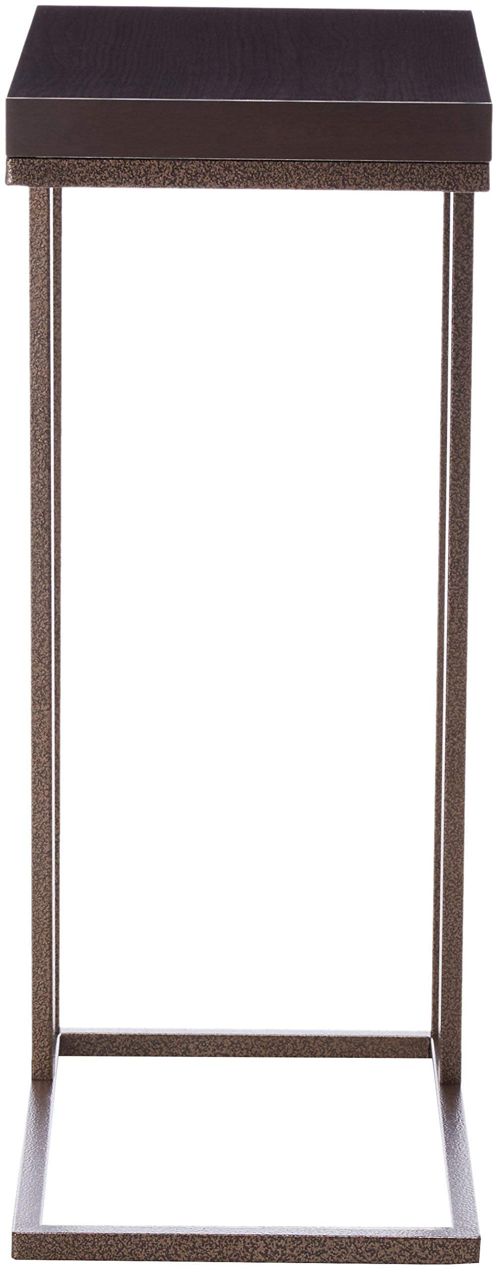 What a convenient way to eat or drink on your couch! This contemporary style rectangular accent table with a cappuccino finish has sufficient space to place your tablet, snacks, drinks or even meals. The bronze metal base provides sturdy support along with a fashionable flair that will suit any decor. A versatile snack table to place in your living room, office space, family room or den.