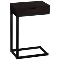 Monarch Specialties C Accent Table with Drawer-Black Metal Base, Cappuccino