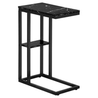 Compact and convenient, this c-shaped side table is the perfect sidekick for any sofa, seat or bed. Founded atop an angular metal frame in a versatile black finish, its top and lower shelf are finished in a black marble-look laminate to compliment your home décor. The top provides a place to set down snacks, the remote, and more, while shelf below offers a spot for other small odds and ends.