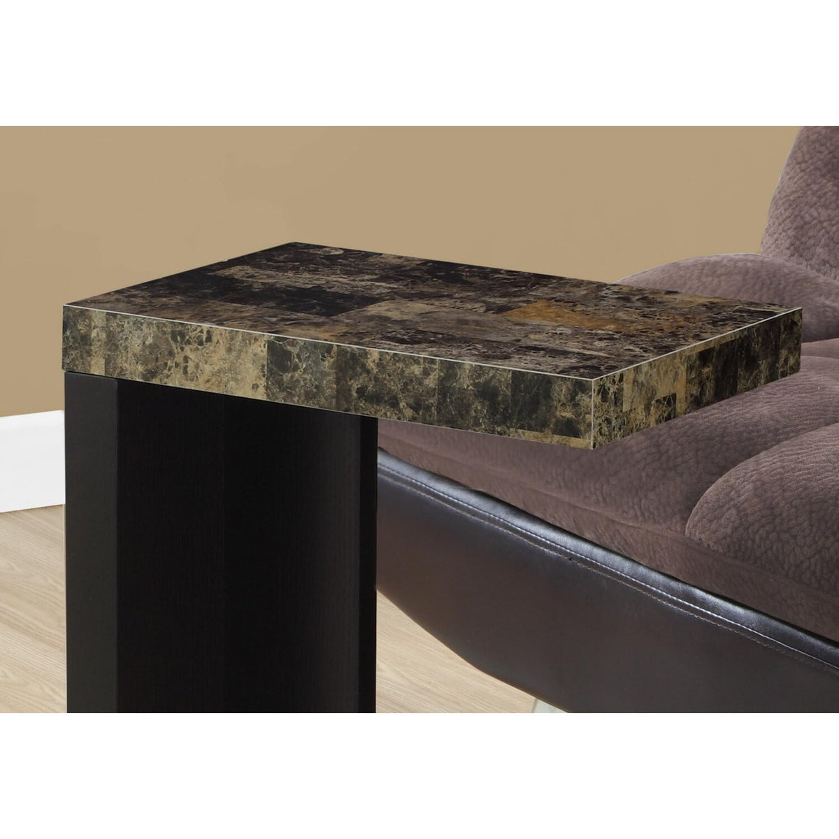 This modern accent table is the perfect combination of style and functionality. With a thick paneled table top finished in a stylish brown and beige marble look, this robust looking accent table will suit any decor. Designed to easily slip under your sofa to keep it conveniently close, this is the ideal accent table to hold your drinks, snacks or even meals. Lounging on the couch has never been more convenient.