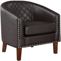 Provide The Ultimate Seating Experience With The Barrel Chairs From Prilinex. This Barrel Chair Combines Elegance, Luxury, And Practicality In It! Meticulously Designed To Be The Epitome Of Style And Comfort, This Barrel Accent Chair Is A Statement Piece That Elevates Any Living Space.The Ergonomic U-Shaped Backrest And Diamond Net Design Provide Exceptional Lumbar Support. The Thickness Of The Cushion Reaches 6 ' So That When You Sit Down To Feel A Soft Sense Of Fit. Wide Armrests Provide A Cozy Resting Place For Your Arms, So You Can Relax With A Good Book Or Just Enjoy A Moment Of Peace And Quiet. The Sleek Brown Finish And Decorative Nail Head Details Make This Club Chair A Statement Piece That Complements Any Decor Style. The Sturdy Wood Frame Design Creates The Comfortable Seating Solution For Long Discussions And Brainstorming Communications. Whether Used Around Conference Tables Or In Collaborative Spaces, These Cozy Barrel Chairs Promote A Conducive Environment For Productivity And Creativity. Simply Screw On The Legs And You'Ve Got The Perfect Bucket Chair. What'S More, Simply Wipe Away Spills Or Stains, And Your Accent Chair Will Look As Good As New. Enjoy The Satisfaction Of Easily Assembling And Cleaning Your Bucket Chair, Getting Ready For A Comfortable Seating Experience! Upgrade Your Spaces Today And Let The Prilinex Barrel Chair Become An Essential Element Of Your Living And Working Environment.