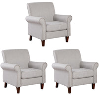 Prilinex Upholstered Living Room Chair Set Of 3 - Large Comfy Fabric Accent Chair Single Sofa With Cushion, Rolled Armrest & Nai