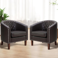 Primezone Barrel Chair Set Of 2, Comfy Accent Chair, Faux Leather Living Room Chairs Club Chair With Cushion, Nailhead Trim And