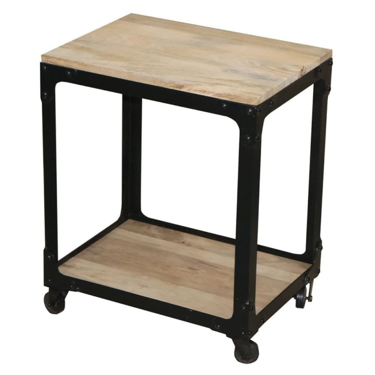 A simple industrial design that works with practically everything. Made from mango wood and an iron frame. It is simply the coolest little table to use by your sofa, between 2 chairs, or by your bed. Wood is finished naturally and contrasts perfectly with the black iron finish. This is truly one of those “go with everything” tables. Did I mention, it has casters?