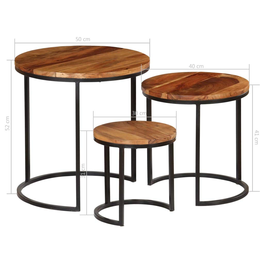 Vidaxl Coffee Table Set 3 Piece, End Table With Steel Legs, Nesting Side Table For Living Room Bedroom, Industrial, Solid Wood Acacia Sheesham Finish