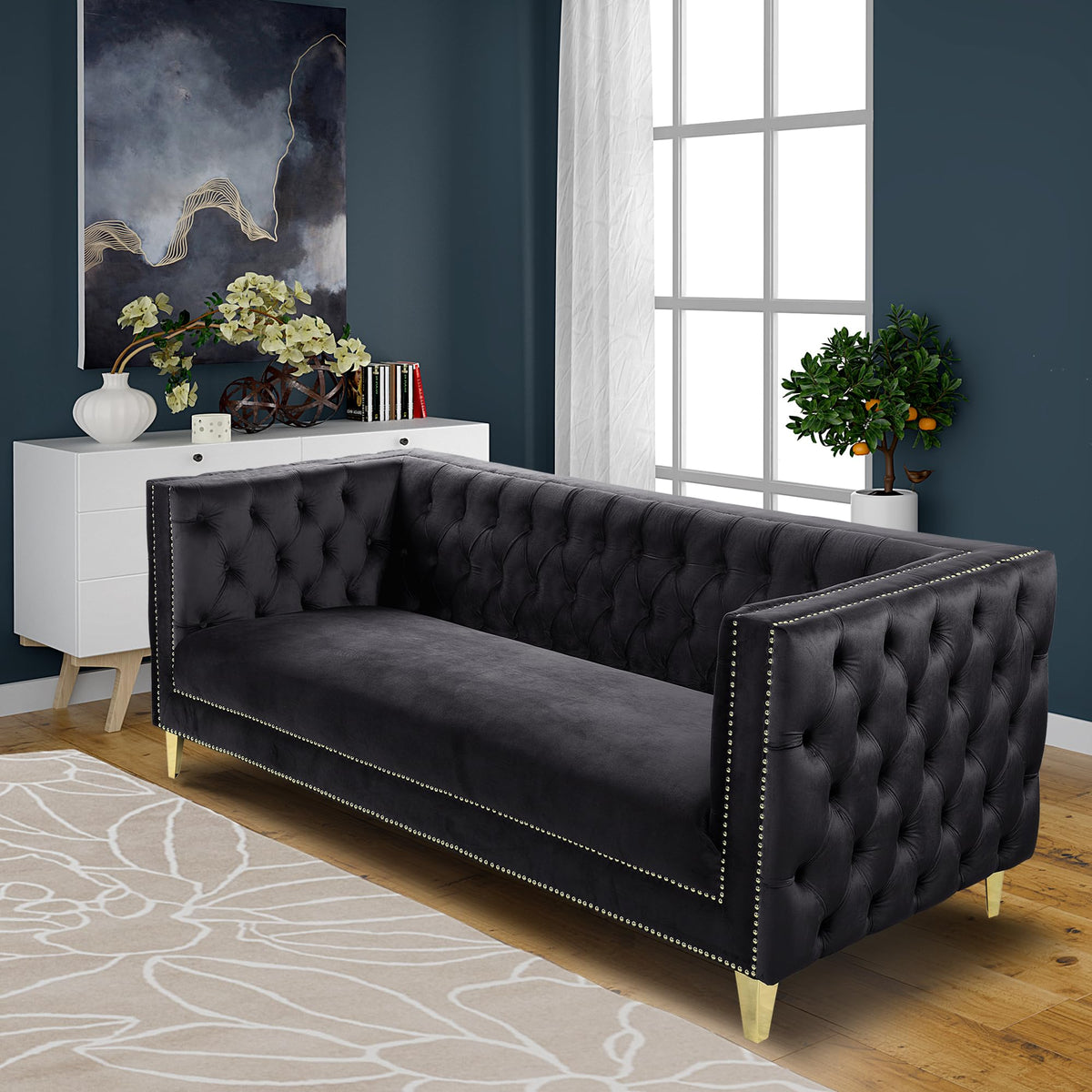 Woodpeckers Furniture And Mattress Luxe Velvet Sofa with Gold Legs, Fully Assembled. (Black)