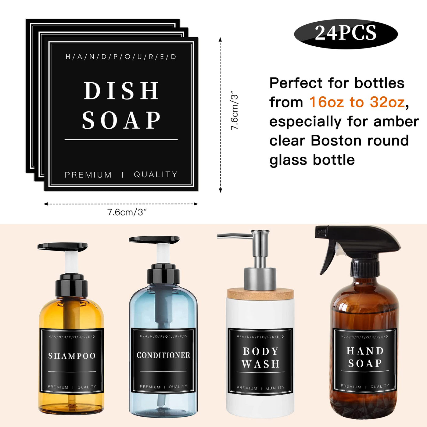 24Pcs Waterproof Labels For Glass Or Plastic Bottles, Bathroom Hand Soap Shampoo Dispenser Label Stickers, Removable Cleaning La