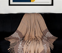50'' X 60'' Brown and Beige Woven Cotton Striped Throw Blanket with Tassels and Embroidery
