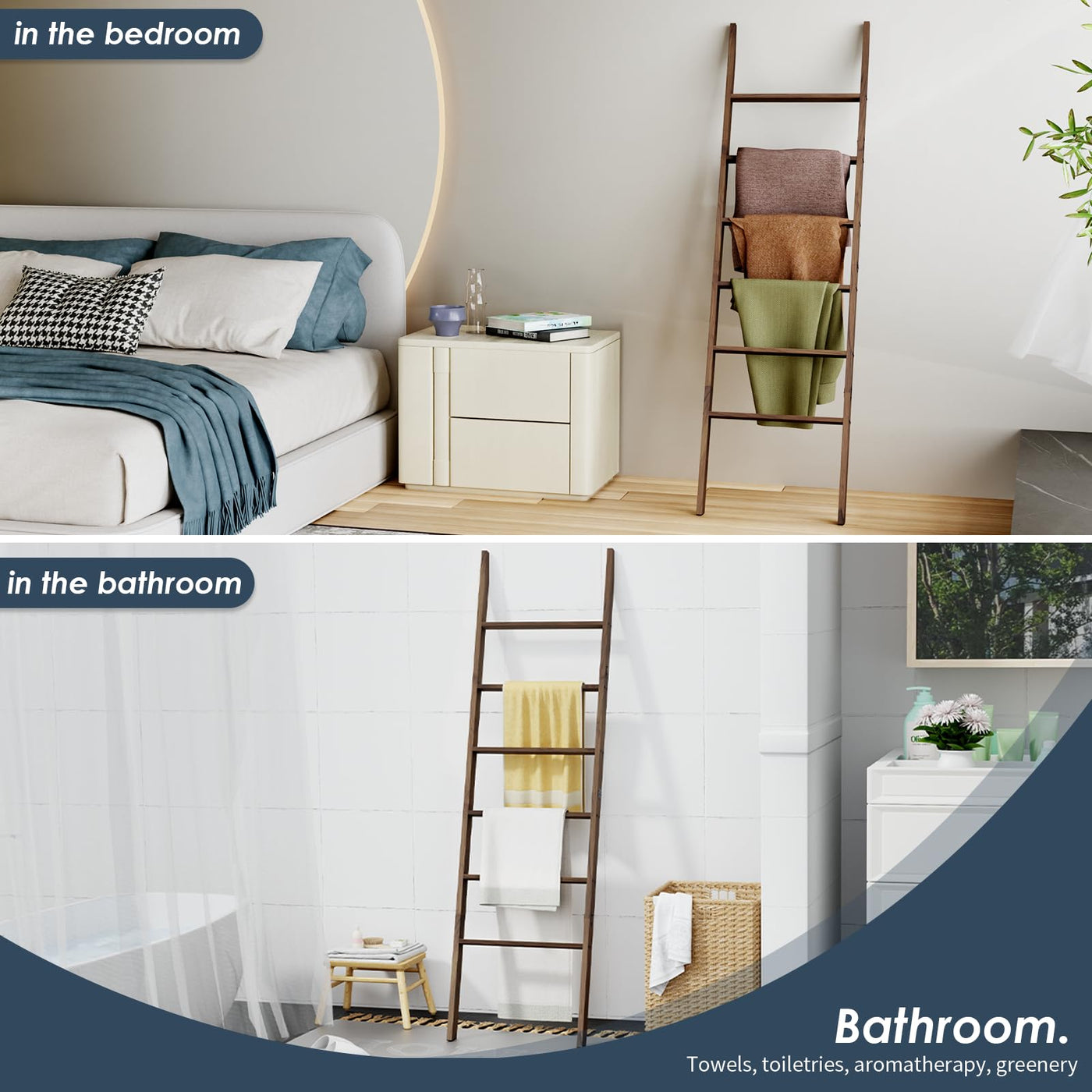 6-Tier Blanket Ladder Wooden, 5.7Ft(66.5'') Blanket Quilt Towel Holder Rack Decorative Ladder, Easy Assembly, Rustic Farmhouse Wood Ladder Shelf For The Living Room Bedroom Bathroom Home Decor, Acacia Our Wooden Blanket Ladder Is Made From High-Quality Wood That Is Both Durable And Aesthetically Pleasing. Crafted From Premium Wood, This Ladder Shelf Has A Sturdy Build And Is Designed For Blanket, Towels, And Other Linens Storage Without Sagging Or Bending. Multi-Purpose & Multi-Scenario The Wooden Blanket Ladder Is A Piece Of Farmhouse Bedroom Bathroom Living Room Furniture That Can Be Used In Many Ways. It Can Be Placed In The Bedroom Or Living Room As A House Decorations For Home. It Can Also Be Used As A Utility Item In The Bathroom As A Hanger For Towels, Blankets, Clothes. Package & Easy Assembly The Wood Blanket Ladder Shelves Rack Is Equipped With All Necessary Hardware Including Long Screws * 25, Short Screws * 14, Iron Sheet * 6, Screwdriver * 1 And Detailed Instructions, Even If You Dont Have Any Installation Experience, You Can Easily Assemble It. It Has Also Been Carefully Packaged To Ensure It Arrives At Your Door In Perfect Condition.