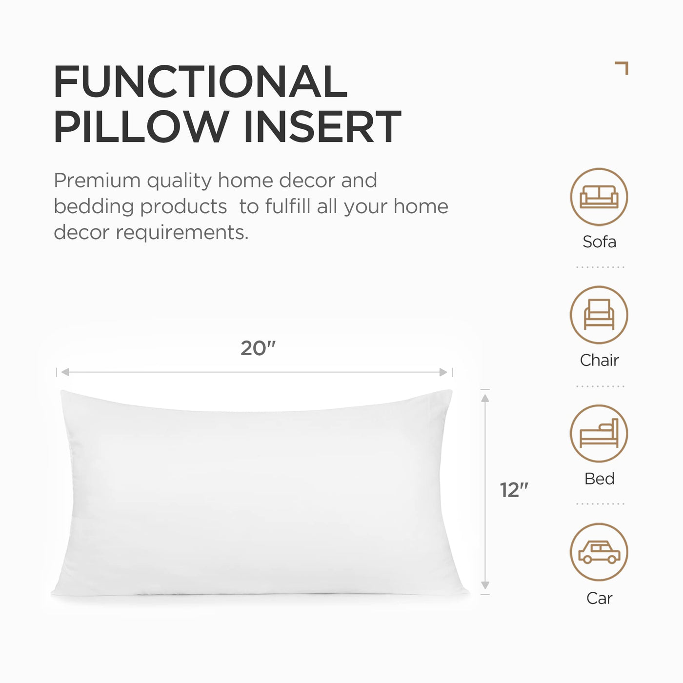 Acanva Throw Pillow Stuffer Inserts Decorative Rectangle Premium Sham Forms Cushion For Sofa Couch Chair, 12X20 Inch (Pack Of 2), White 2 Count