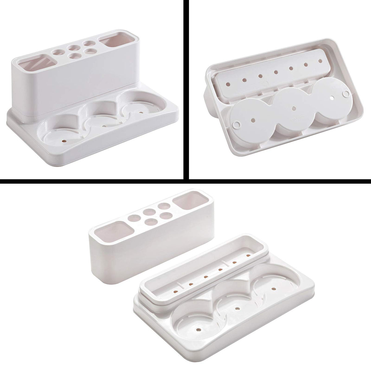 Include 3 Rinse Cups And 1 Toothbrush Toothpaste Holder.Made Of High Quality Abs Material. This Large Capacity Toothbrush Holder Can Help You Save Space And Keep The Bathroom Countertop Clean And Tidy, No Need To Worry About Mess. 3 Different Color Cups Set Are Suitable For The Whole Family, Especially For Kids.