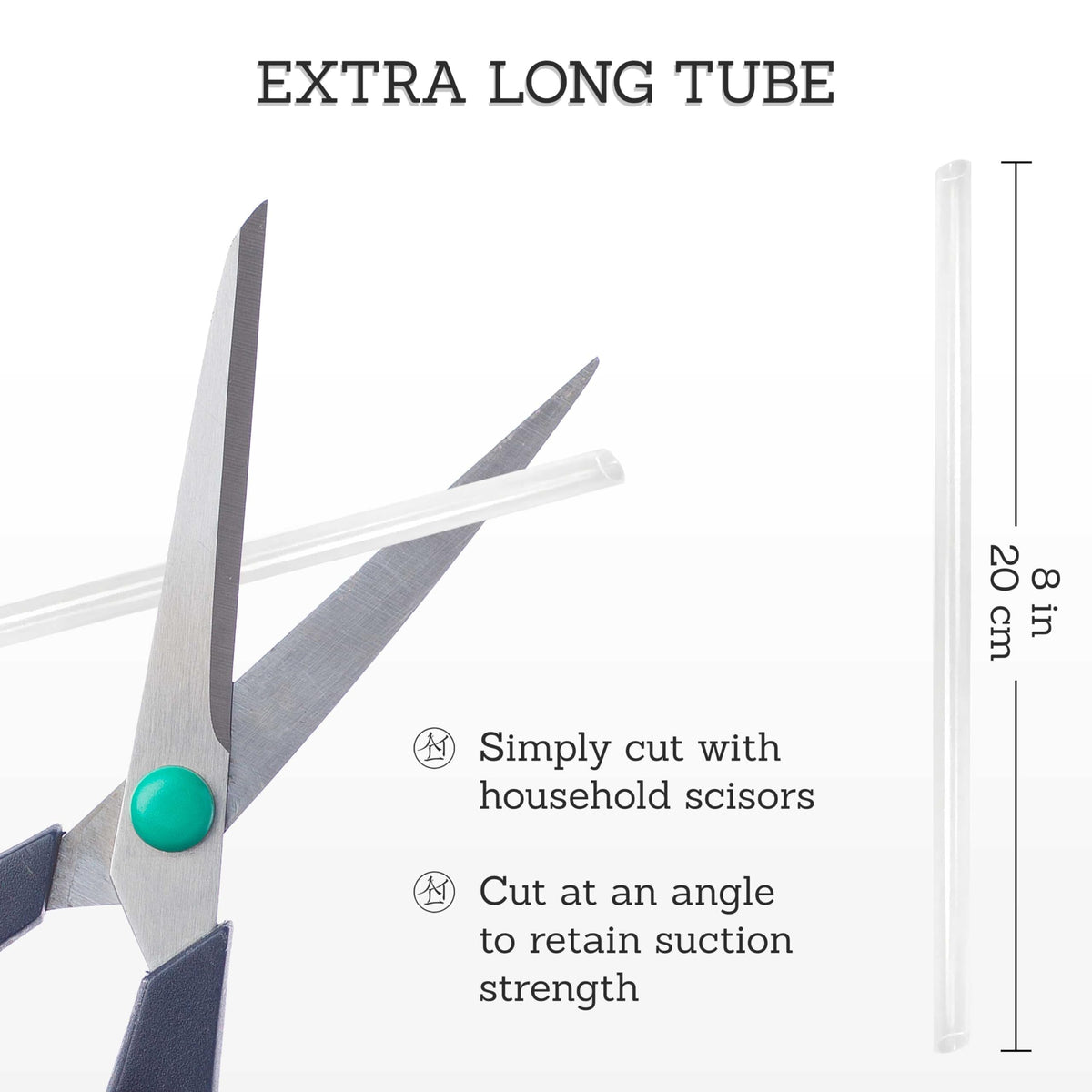 Q: Can I adjust the length of the tube that comes with the pump?A: Absolutely! The included tube is 8 inches (20 cm) long and can be easily cut to your desired length using scissors. For optimal performance, it's recommended to cut the tube at an angle to maintain its suction strength.