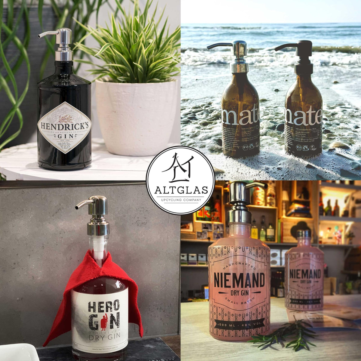 Q: What types of bottles are compatible with the ALTGLAS soap dispenser pump?A: The ALTGLAS soap dispenser pump is designed to fit a variety of bottles, including Boston Round bottles and Jack bottles (35cl and 70cl), as well as Bombay bottles (35cl and 50cl). It features a standard 28-400 thread size, which makes it compatible with many other soap dispensers.