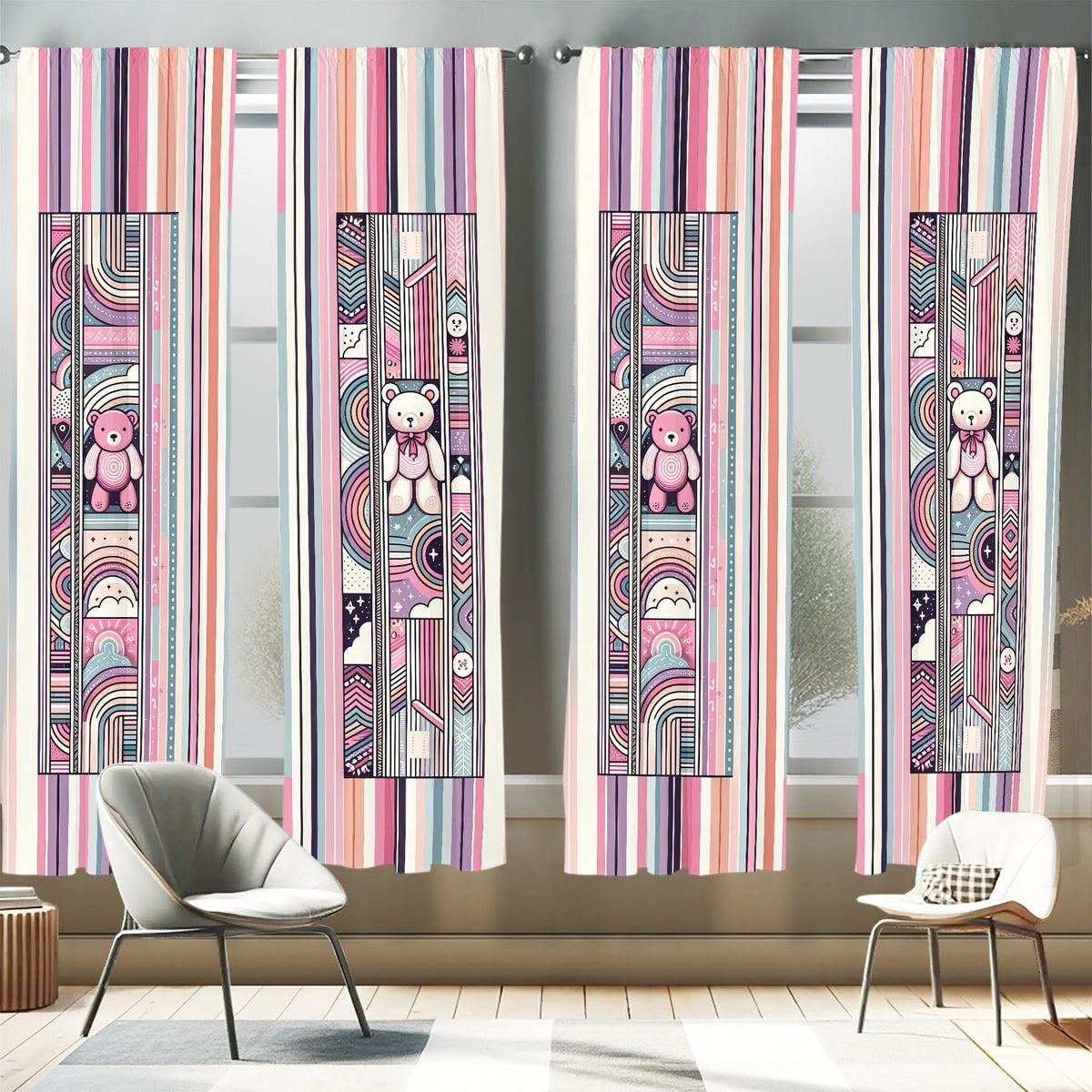 Ambesonne Bear Window Curtains Pack Of 2, Delicate Pastel Tone Road Stripes With Modern Cartoon Dream Cloud And Sun, Lightweight