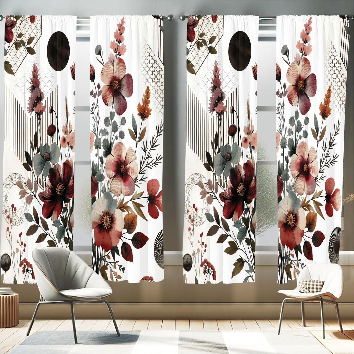 Ambesonne Floral Window Curtains Pack Of 2, Mid Century Modern Rounds Chevrons And Stripes Ornate Leafy Wildflowers, Lightweight Set & Rod Pocket, 4 Panels Of - 28' X 63', Maroon Dark Sea Green