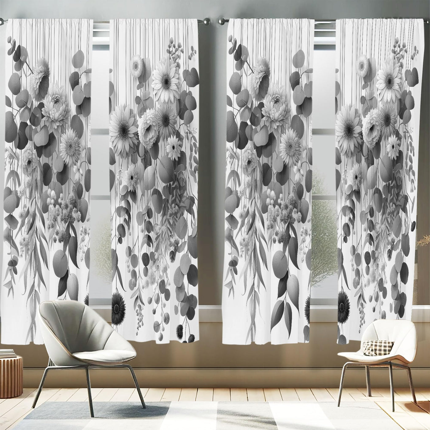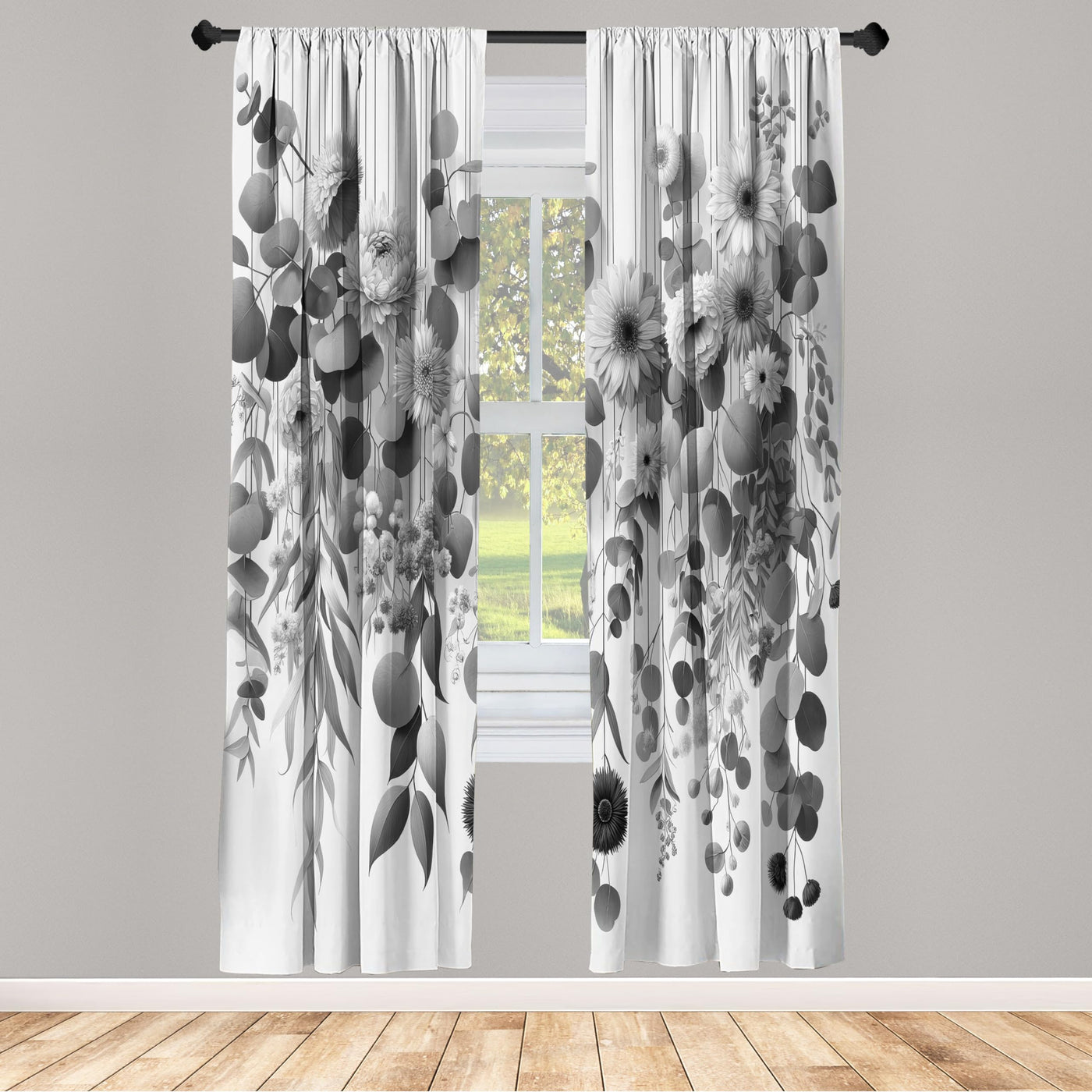 Ambesonne Grey Window Curtains Pack Of 2, Modern Illustration Of Futurist Design Leafy Floral Scene Monochrome Style, Lightweight Set & Rod Pocket, 4 Panels Of - 28' X 95', Pearl Charcoal Grey