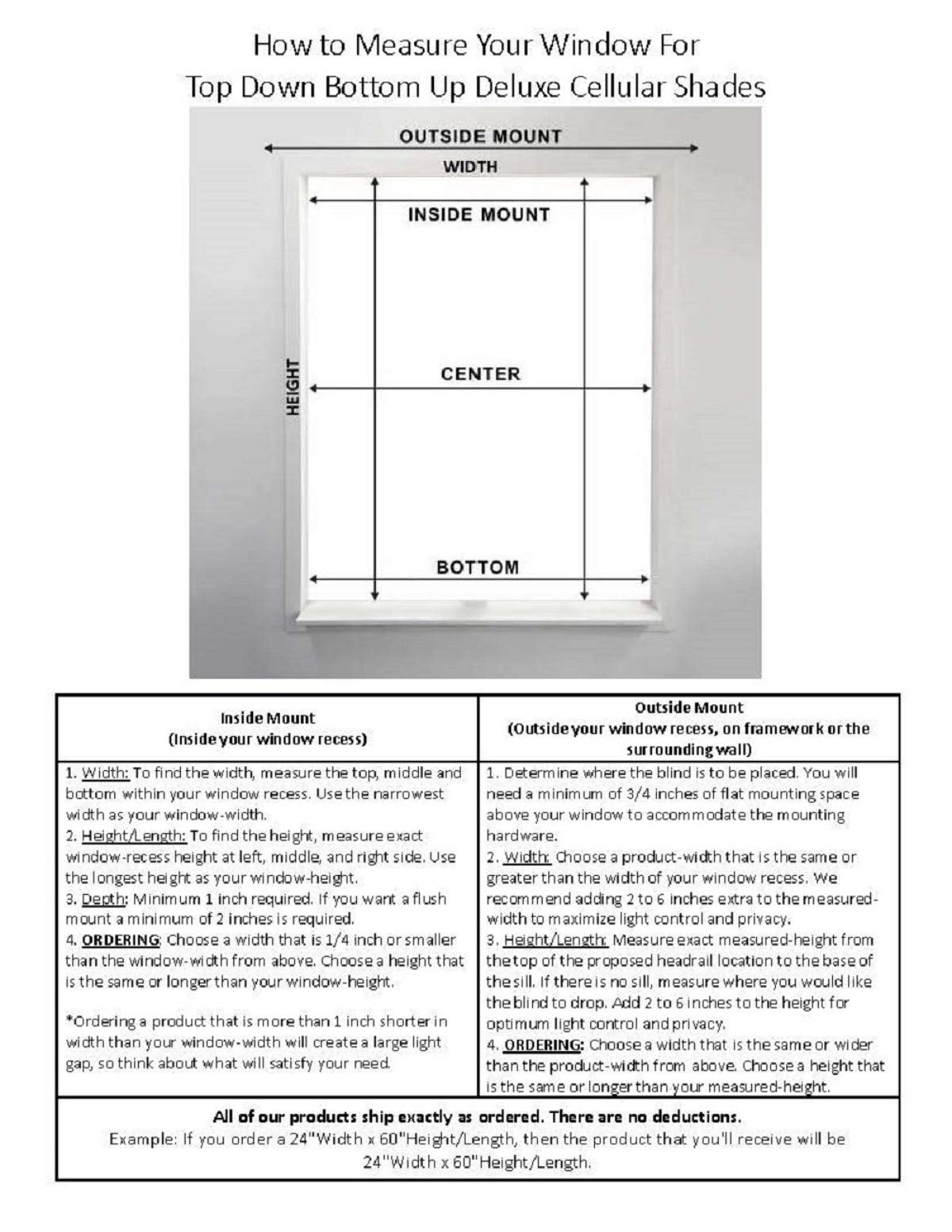 This Beautiful Top Down Bottom Up Cellular Shade Allows Flexibility And Is Safe To Use Around Children And Pets. The Shade Is Adjustable From The Top And The Bottom Which Allows You To Let Light Into Different Height Levels Of The Room. Since The Back Of This Cellular Shade Is A White Color, It Is Typically Approved By Most Hoas. This Item Is True To Size, So Please Account For The Necessary Deductions So That This Can Fit Properly In Your Window.