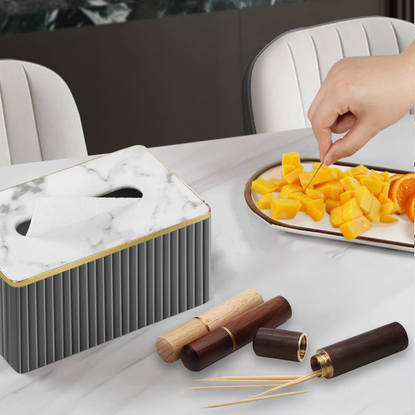 Wooden Toothpick Holders Can Provide You With Unimaginable Convenience And Hygienic Toothpicks In The Mini Artistic Look And With The Handicraft Procedure, Natural Texture, And Practical Usage. The Toothpick Holders Are Made Of High Quality Ebony, Rosewood And Beech. The Appearance Of Toothpick Holder Is Polished Well By Handicraft, Good-Looking And No-Burr, Will Not Hurt Your Skin.Bring You A Good Grip Experience.
