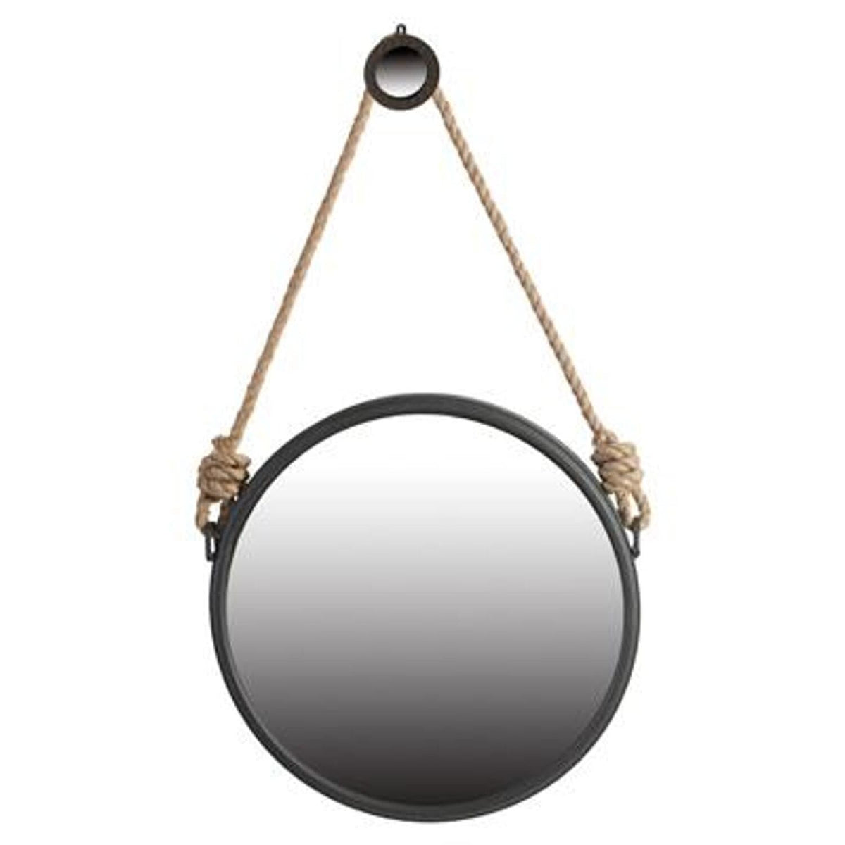 Update your home with this 20' round wall mounted accent mirror framed. The black coloring infuses a strikingly modern tone to your space and the authentic rope for hanging gives it an updated casual look. This mirror has a round shape that provides the clearest reflections of light and color. Add this mirror to give yourself and your guests a chance to check themselves out in style. This mirror is the perfect reflection of your good taste and sense of design. 19.5' H x 19.5' W x 1.8' D