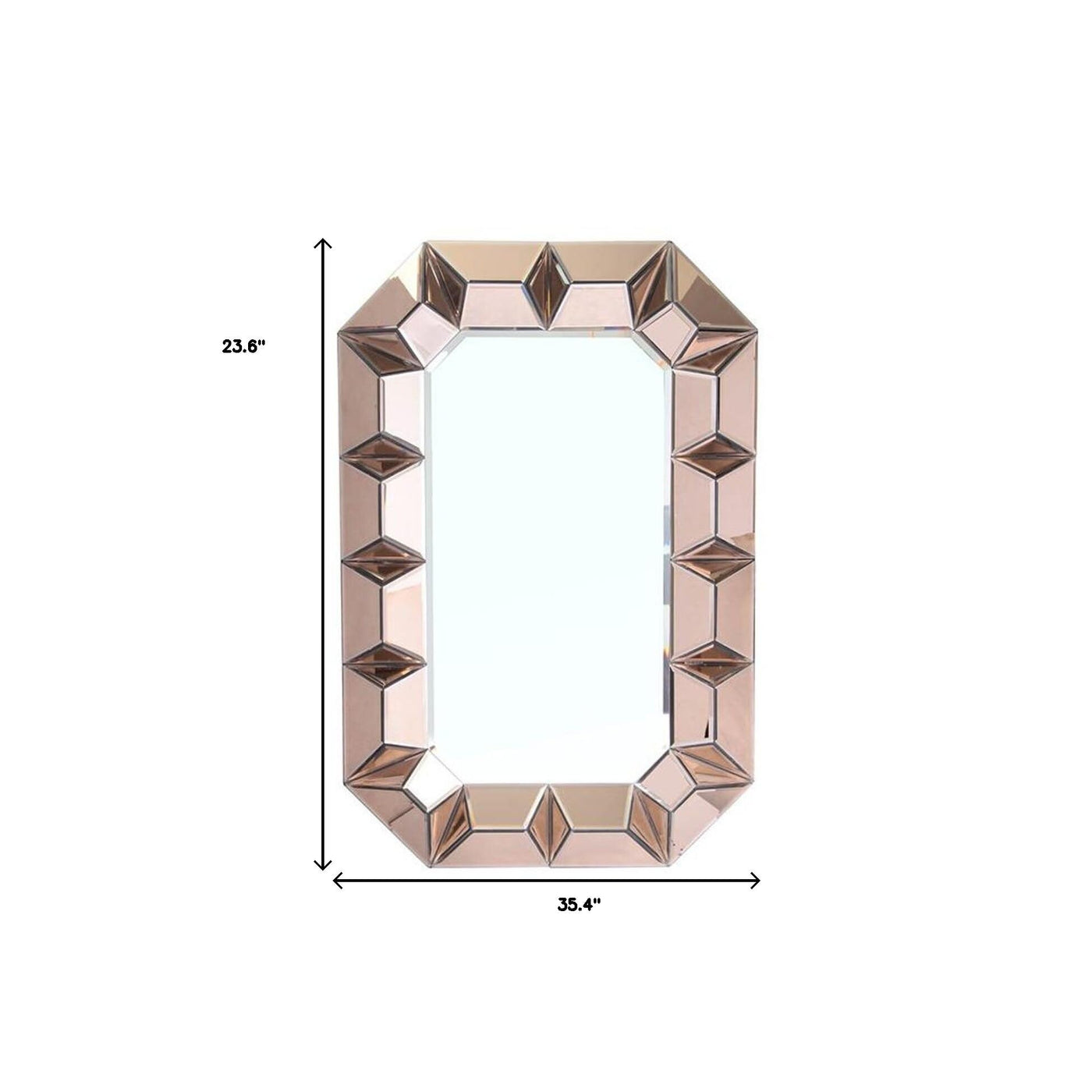 This 24' rose gold geometric frame wall mounted accent mirror framed is a great way to add the perfect finishing touch to your decor. This unique shape of this mirror will help to open up the space of your room. The chunky yet sleek geometric frame in a warm rose gold finish gives this piece a unique look. This mirror will give you a perfect distortion-free reflection every time. This mirror is the perfect reflection of your good taste and sense of design. 23.6' H x 35.4' W x 1.6' D