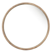 Give your interior a light-boosting effect with this 28' natural rustic brown wood frame round wall mounted accent mirror. This round shaped mirror will help to open up the space of your room. The sturdy frame with natural knots and grains and slight whitewash distressing adds extra style and design flair to this great mirror. This mirror will give you a perfect distortion-free reflection every time. Mirrors are a great way to add life and luster to your room. 27.6' H x 27.6' W x 2' D
