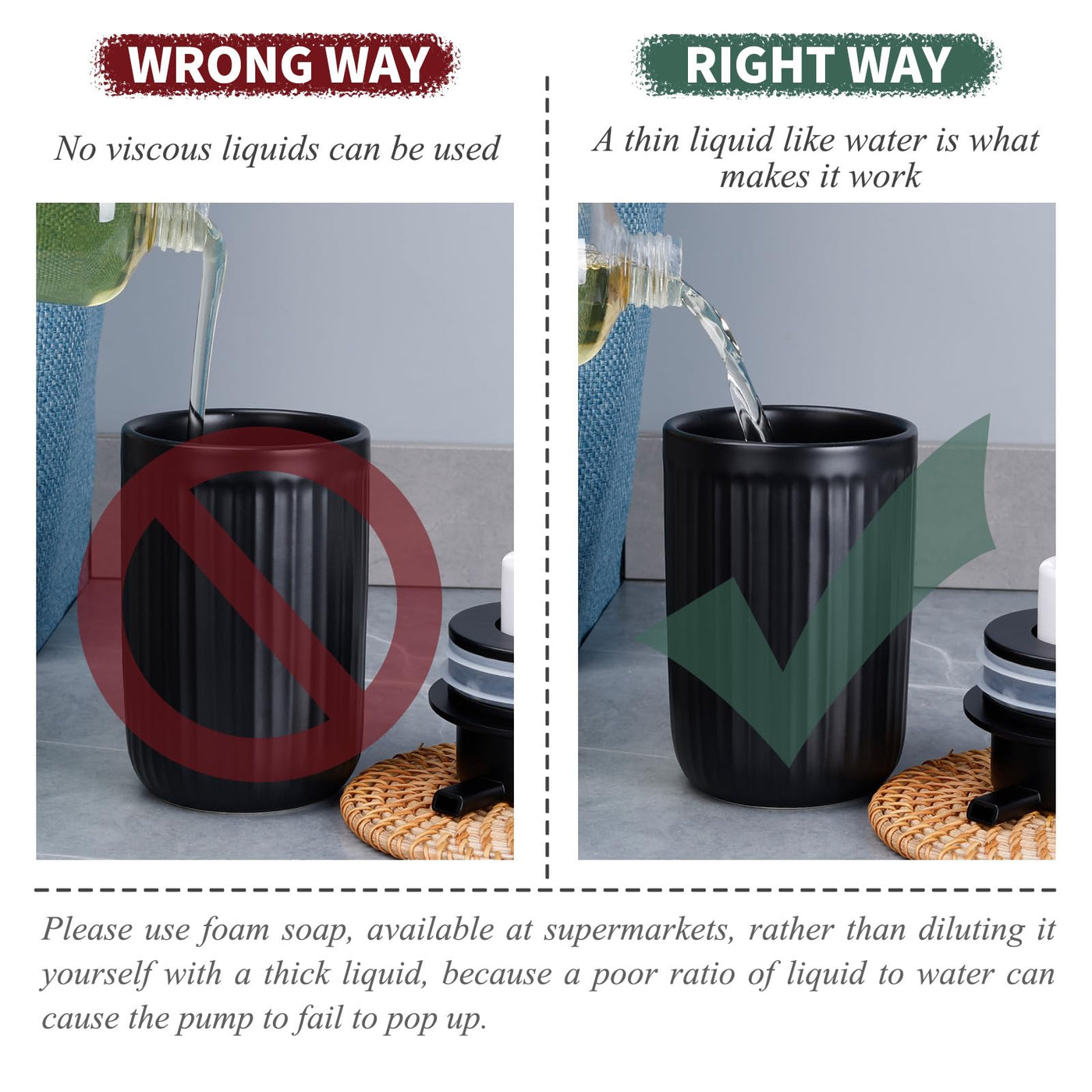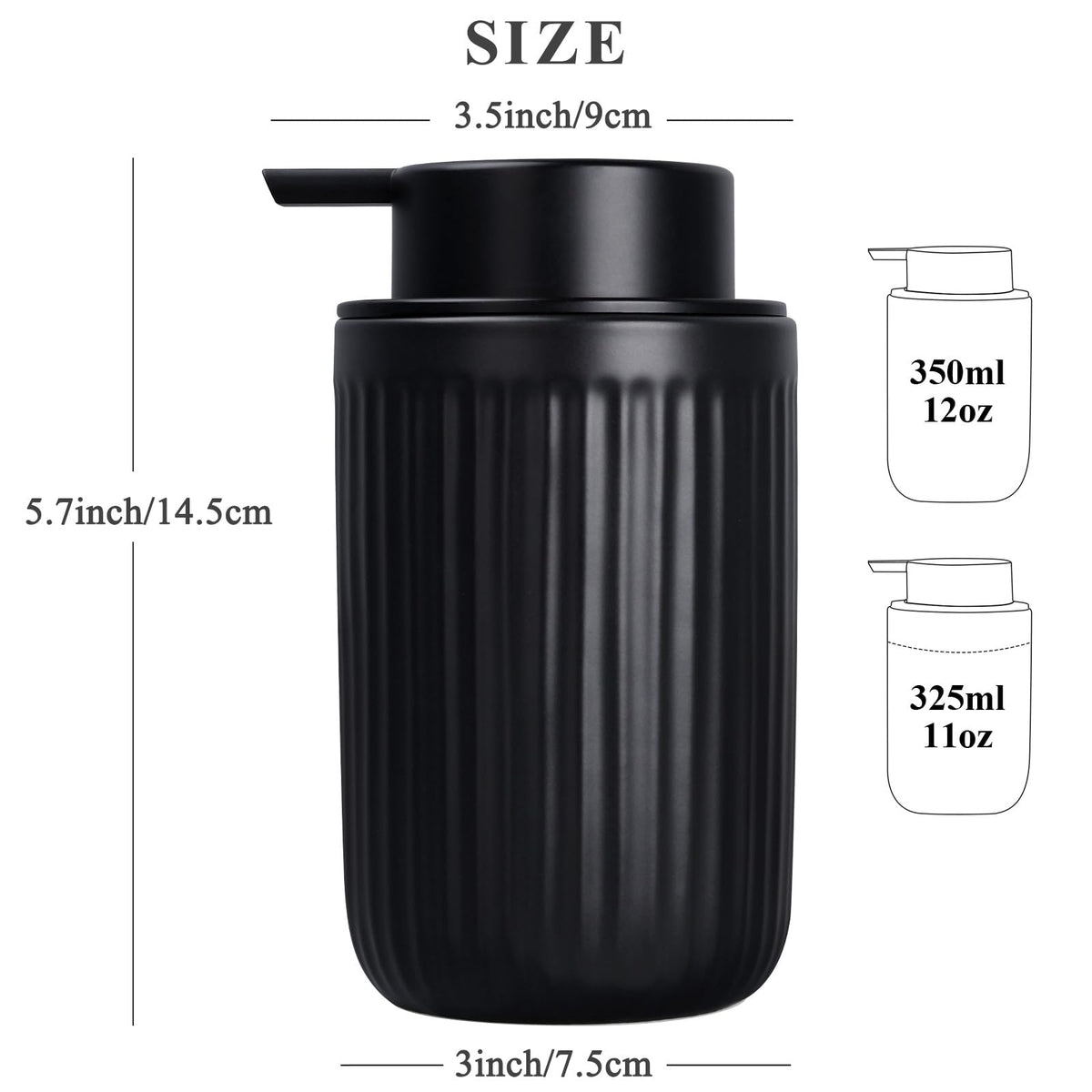 Bosilunlife Foam Hand Soap Dispenser - Ceramic Black Foaming Soap Dispenser For Bathroom 12Oz Refillable Liquid Lotion Soap Disp