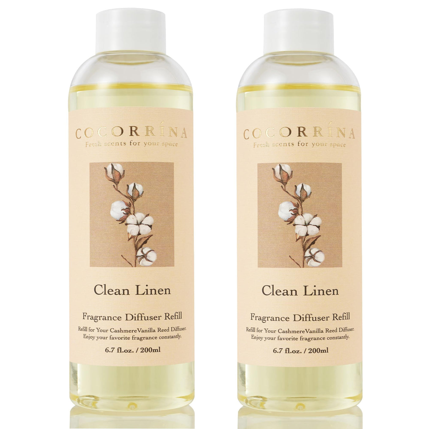 Cocorrína Reed Diffuser Refill, Clean Linen, 6.7 oz (2 Pack) - Aromatherapy Home Fragrance Oil for Lasting Scent