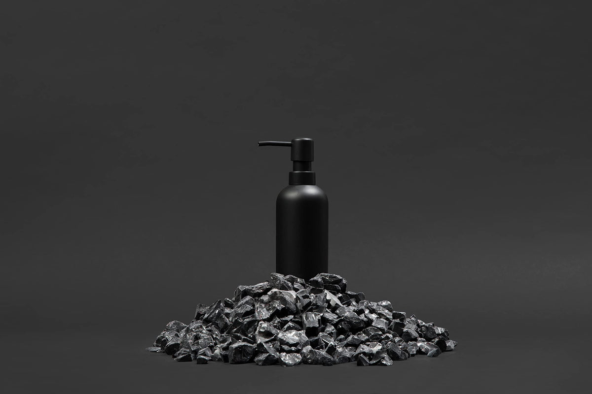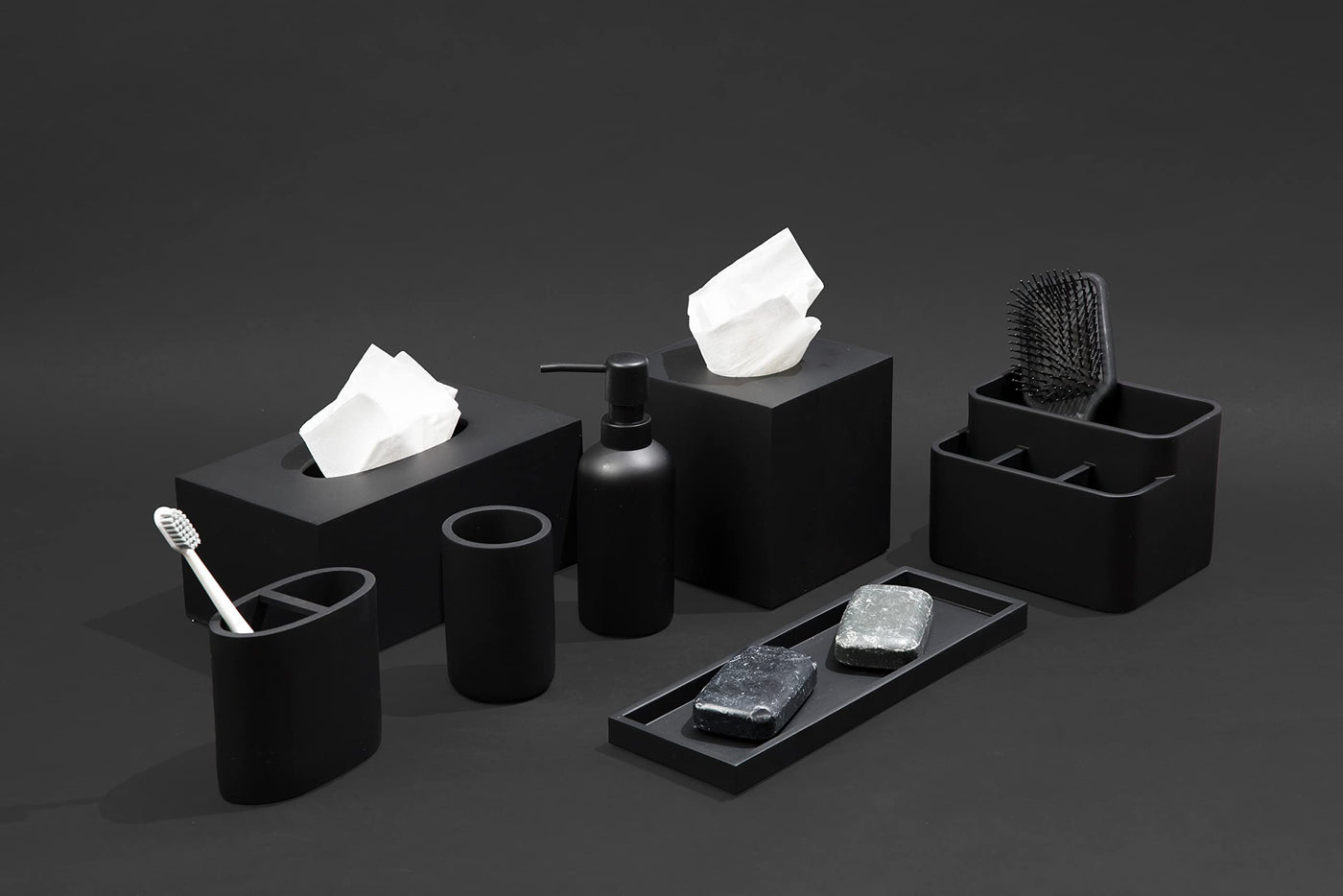 Q: What materials are used in the Essentra Home Matte Black Soap Dispenser?A: The Essentra Home Matte Black Soap Dispenser is made of premium polyresin, ensuring durability and a polished black matte finish that enhances any bathroom or kitchen decor.