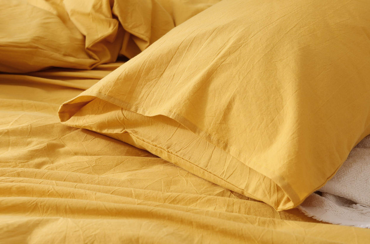 F.Y.Dreams 100% Washed Cotton Duvet Cover For Weighted Blanket 48X72 Inches With 8 Ties, Zipper On Long Side/Yellow/Just Duvet C