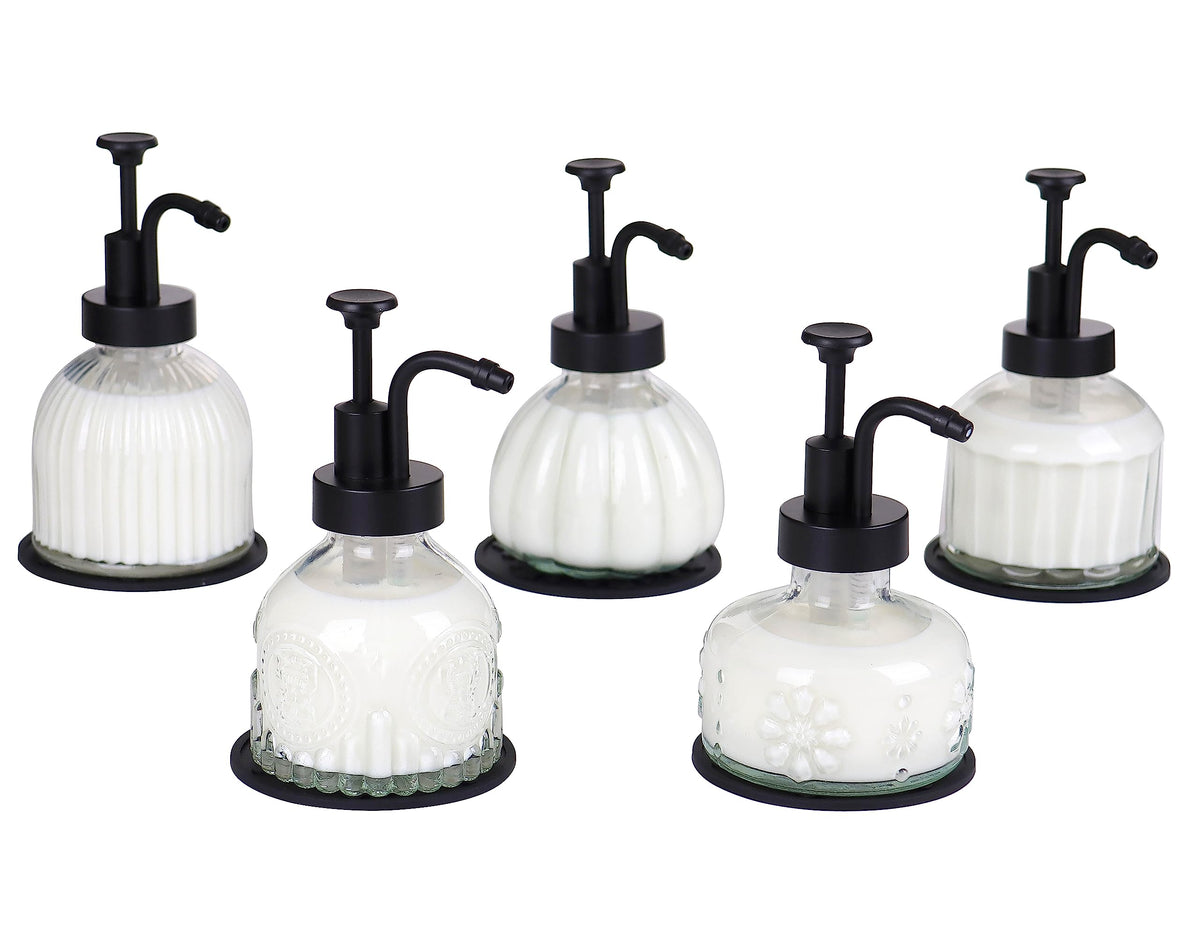 Q: What materials are used in the Glass Soap Dispenser?A: The Glass Soap Dispenser is made of high-quality clear glass with a black pump made from durable plastic, ensuring a non-leaking and efficient experience.