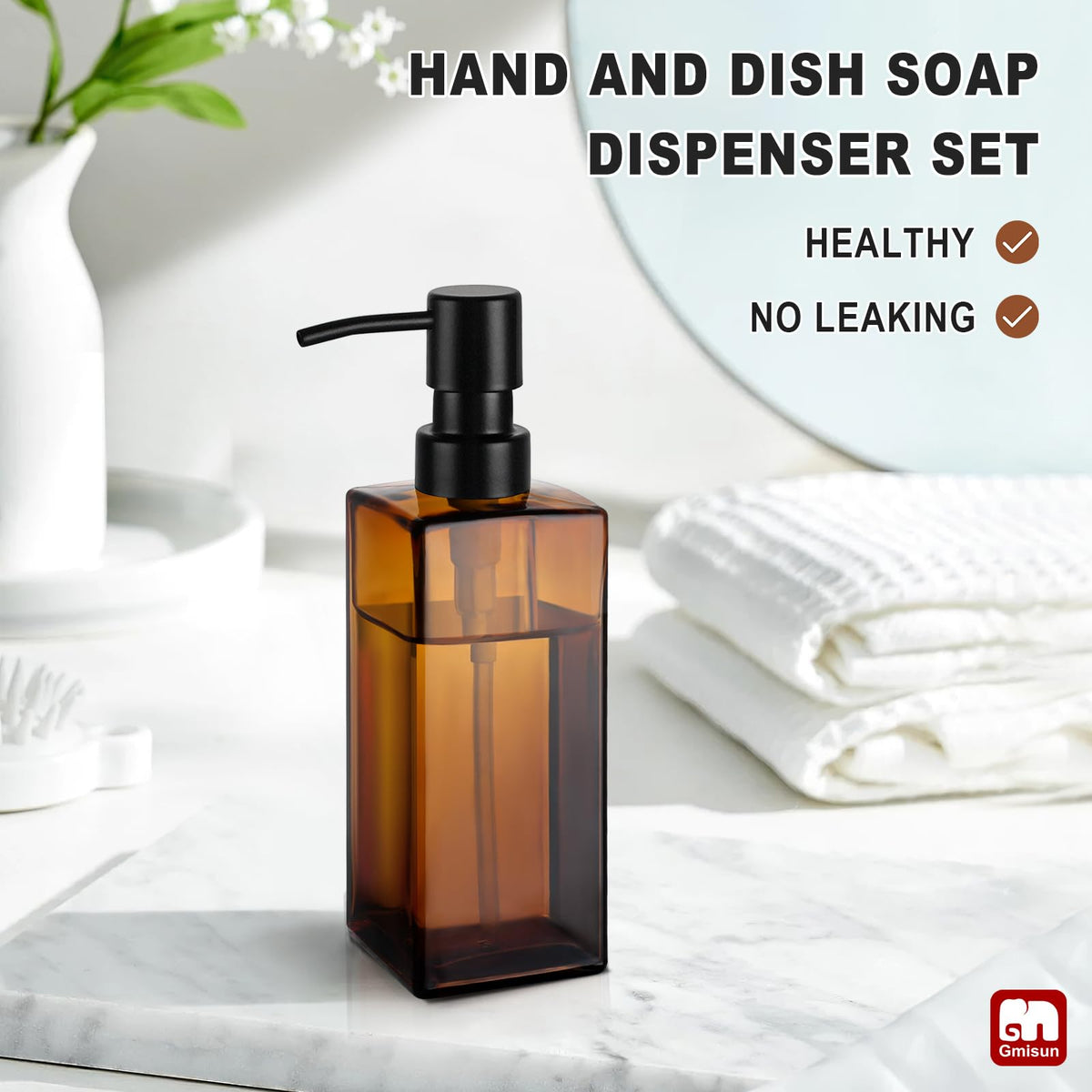 Gmisun Amber Glass Soap Dispenser With Stainless Steel Pump, Hand Soap Dispenser For Bathroom, 12Oz Dish Soap Dispenser For Kitc