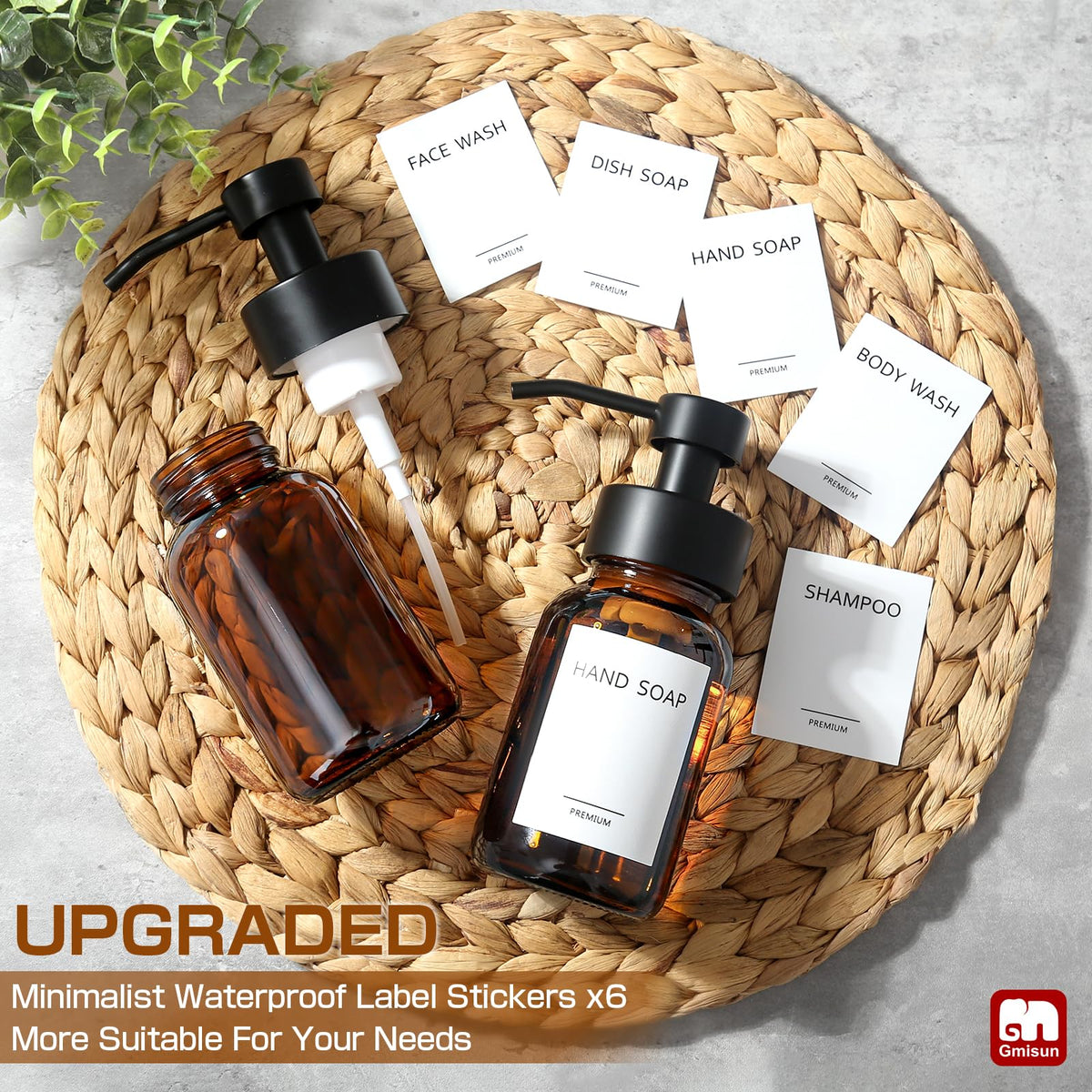 Gmisun Foaming Soap Dispenser, 8.5 Oz Amber Glass Foam Soap Dispenser For Bathroom & Kitchen, 2 Pack Modern Refillable Foaming H