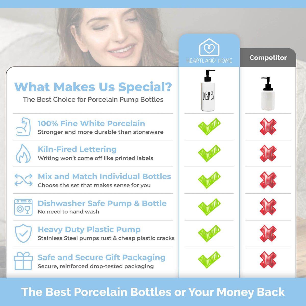 Heartland Home Porcelain Pump Bottles, 16Oz White Glazed Porcelain Bottle Pump, Gift Boxed With Replacement Pump. Available In 5 Different Dispenser Pump Styles: (1. Soap) Fancy Soap Dispenser For Hands, Dishes, Laundry, Shower Soap Dispenser Or Bathroom Soap Dispenser. (2. Sanitize) Gel Hand Sanitizer Pump, (3. Dishes) Dish Soap Dispenser Pump, (4. Lotion) Empty Lotion Bottles, (5. Wash) Bottle Dispenser For Liquid Hand Soap Or Dish Soap With Pump, (6. Hands) Bottle Dispenser For Liquid Hand Soap With Pump, Hand Lotion Dispenser For Bathroom, Or Hand Soap Dispensers For Bathroom. Order The Pump Dispenser You Need, Select Multiples, Or Collect The Whole Set From Heartland Home, Home Decor.
