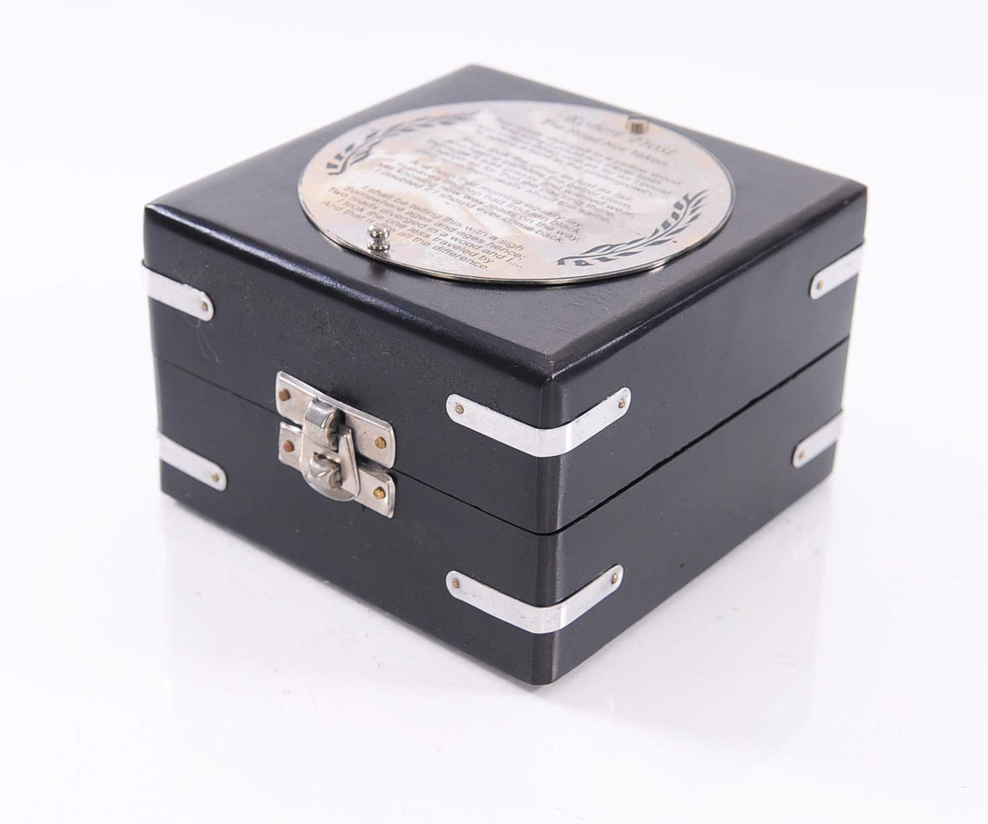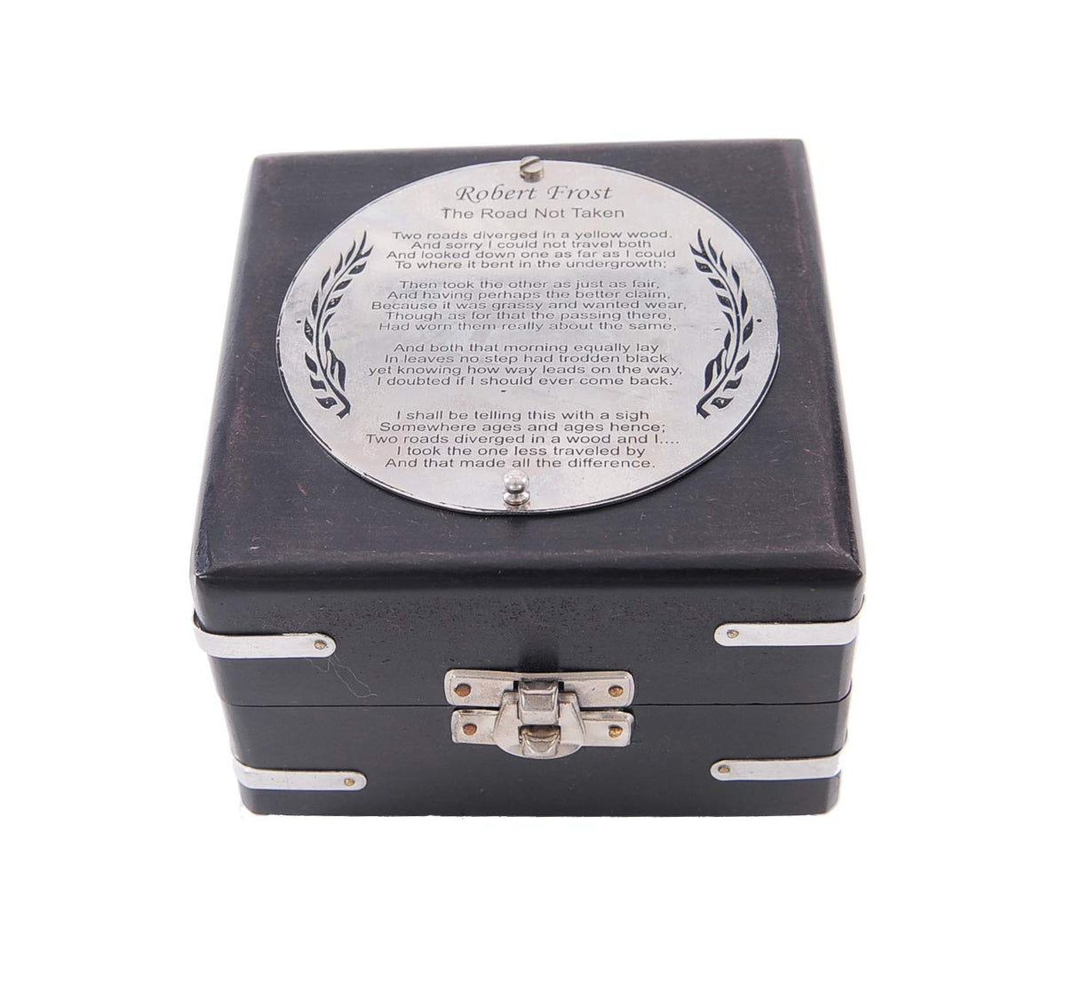 The perfect gift for him! This handsome clock and compass embody the values of staying on time and in the right direction like a true navigator. On the bottom of the case is an excerpt from Robert Frosts 'The Road Not Taken', which further embraces the true spirit of an explorer of life. 'Â Compass and fittings made out of aluminum with a shiny nickel finish 'Â Clock uses one AA 1.5V battery (battery not included) 'Â Metal clasp to keep the case closed 'Â Robert Frost poem etched in black