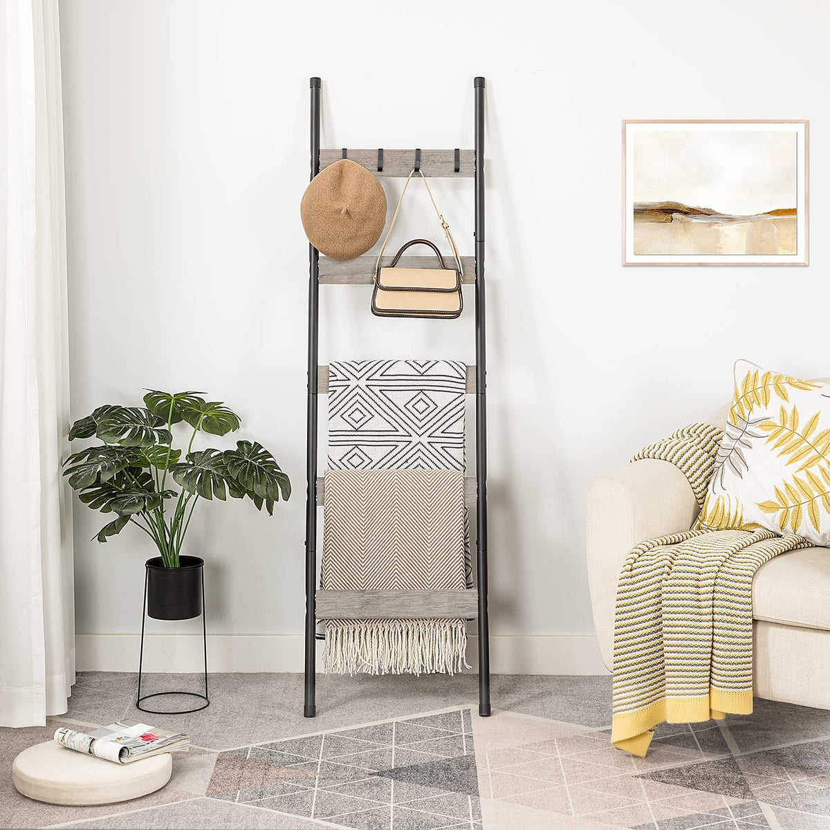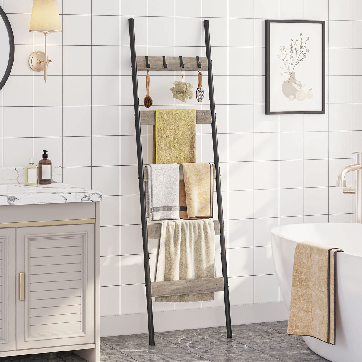 Perfect For Any Room In Your Home, Whether It'S The Living Room, Bedroom, Bathroom, Or Laundry Room, This Ladder Shelf Offers Endless Possibilities For Organization And Storage. Hang Your Towels In The Bathroom, Display Your Blankets In The Living Room, Or Keep Your Clothes Organized In The Bedroom. The Choice Is Yours!Crafted From Premium Materials, This Towel Rack Is Built To Last. The High-Quality Construction And Size Of 17.3''L X 63''H Ensure Stability And Durability, Allowing You To Enjoy Its Functionality For Years To Come.Upgrade Your Home Storage With The Hoobro Towel Rack - The Perfect Combination Of Style And Functionality. Don'T Miss Out On This Must-Have Addition To Your Home! Specifications: -Color: Rustic Brown, Black -Material: Iron, Particleboard -Size : 17.3''L X 63.8''H Package Contents: -1 X Towel Rack -1 X Accessory Kit -1 X Instructions
