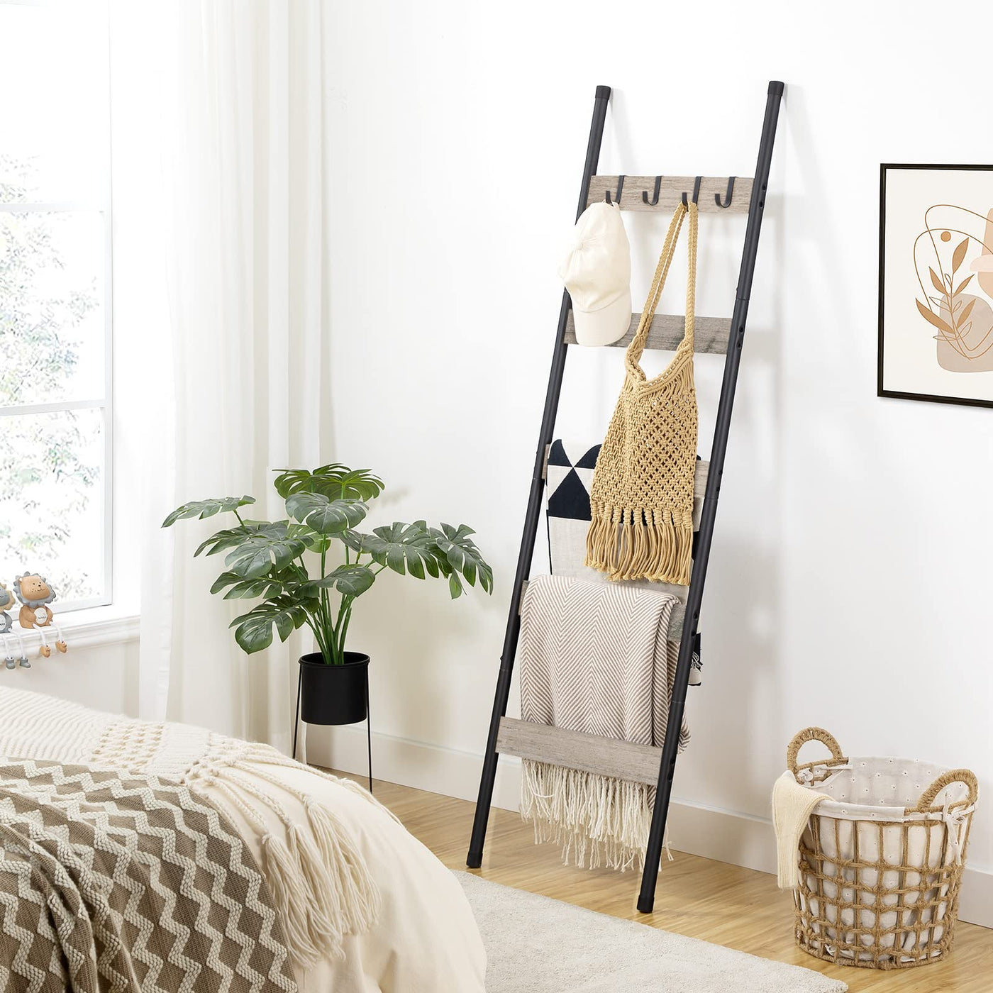 Q: What materials is the HOOBRO Blanket Ladder made from?A: The HOOBRO Blanket Ladder features a stylish vintage particle board combined with a high-quality metal frame, ensuring both stability and durability.