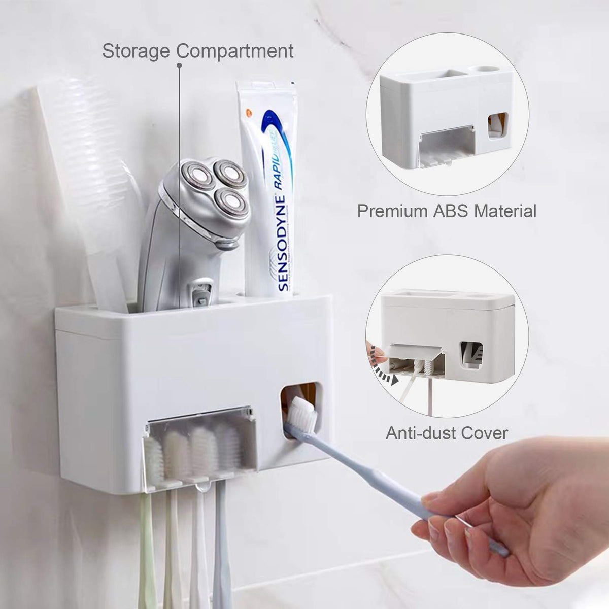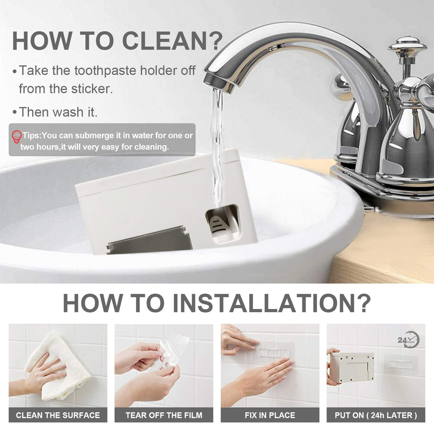 Family Designed For Your Conveniencetoothbrush Holder Keeps Your Toothbrush Safe, Clean.Say Goodbye To Sticky, Messy Sinks And Counters. Product Description: - Weight:290G - Material:Abs+Plastic - Brush Holder:110*55Mm - Toothpaste Dispenser:160*60Mm - No Batteries Required - One-Touch Automatically Squeeze Appropriate Amount Of Toothpaste. - All Come With 3M Double-Side Stickers. The Holder Can Simultaneously Released 3-5Pcs Toothbrushes. - Vacuum Technology Pump Out Last Drop Of Toothpaste To Avoids Waste Of Toothpaste. Package Included: - 1 X Automatic Toothpaste Dispenser - 1 X Free Brush Holder Set - 1 X User Manual Notice: There May Be Too Tight Channel Conditions Happens In Mold Forming Process, In Order To Ensure Squeeze Out Of Toothpaste Smoothly, Please Use Something To Clear The Channel Before You Install The Toothpaste(The First Using).