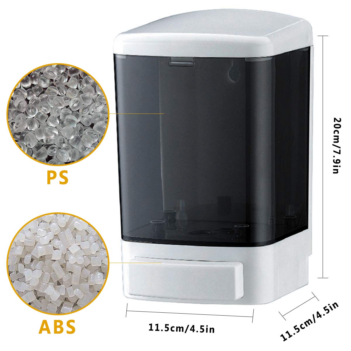 Iealods Wall-Mounted Soap Dispenser Is Durable, Corrosion-Resistant And Rust-Proof. It Is Suitable For Hotels, Homes, Restaurants, Bathrooms, Sinks, Kitchens, Public Baths, Etc.Wall-Mounted Hand Soap Dispensermaterial: Abs Plasticcolor: Black/Transparentcapacity And Size: 33.8 Oz (1000Ml ), 20 X 11.5 X 11.5Cmfeatures1.With Separated Outlet Liquid Nozzle, Avoid Leaking & Waste.2.Refillable And Separated Bottle Which Can Be Took Out From The Soap Dispenser.3.Transparent Window So That Users Can See How Much Soap Is Left, With Push Button For Easy And Clean Soap Dispensing.Tips1. Use Non-Granular, Non-Foaming Liquid Soap Or Hand Sanitizer.2. First Time To Use This Dispenser You May Need To Operate Dispenser By Few Times To Pump The Air Out.3. Clean The Liquid Outlet Regularly To Avoid Clogging, Clean The Inside Pump By Filling Warm Water And Operate It Few Times.How To Install1. There Are Three Mounting Holes For Installation.2. Chose Three Of Them And Install The Anchors Into The Wall.3. Then Open The Mounting Base, Drive The Screws Through The Hole Into The Anchor.4. Close The Base And Install The Main Body On The Base.5. Please Make Sure The Base Is Mounted In The Right Direction Which The Lock Hole Should Be Head Down.Notewhen Using Soap Dispenser Products For The First Time, There May Be Some Clear Water In The Inner Bottle And Pump Head.If Everyone Has This Problem When Using It For The First Time, Don'T Worry.Because This Is Not A Product Quality Issue But A Legacy Of Product Quality Testing.Of Course, It Is Not Necessarily Something That Is Possible.