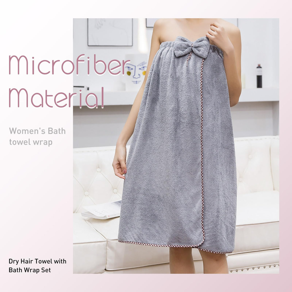 Koikey Women Bath Wrap Hair Towel - Adjustable Luxury Microfiber Soft Towels For Shower After Body Cover, Super Absorbent To Qui