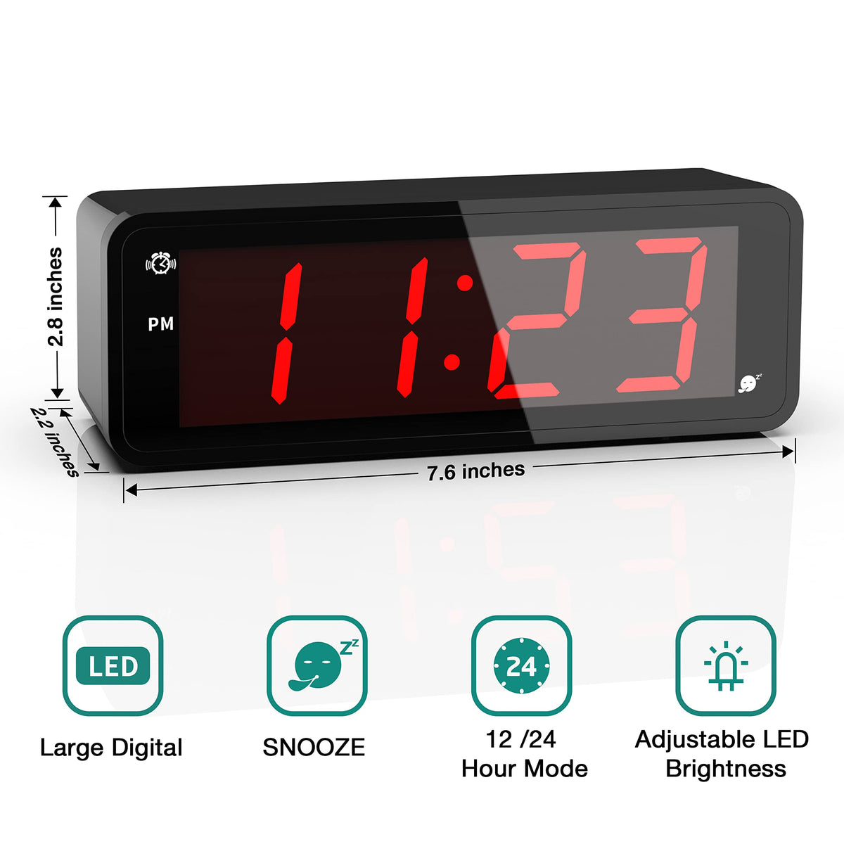 Kwanwa Alarm Clock, Large Display 1.8'' Led Numbers, Adjustable Led Brightness, Battery Operated, 12/24Hr, Snooze, Clearly Visib