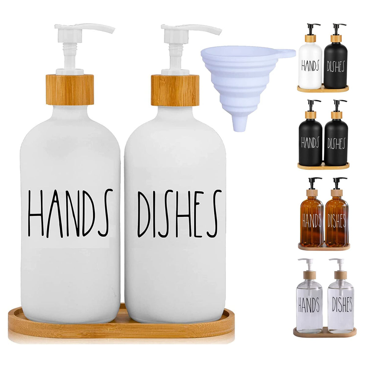 Q: How can I differentiate between the hand soap and dish soap dispensers?A: The bottles in the LOOCHICA set are labeled with 'Hands' and 'Dishes' marks, helping you easily distinguish between hand soap and dish soap, eliminating any confusion.