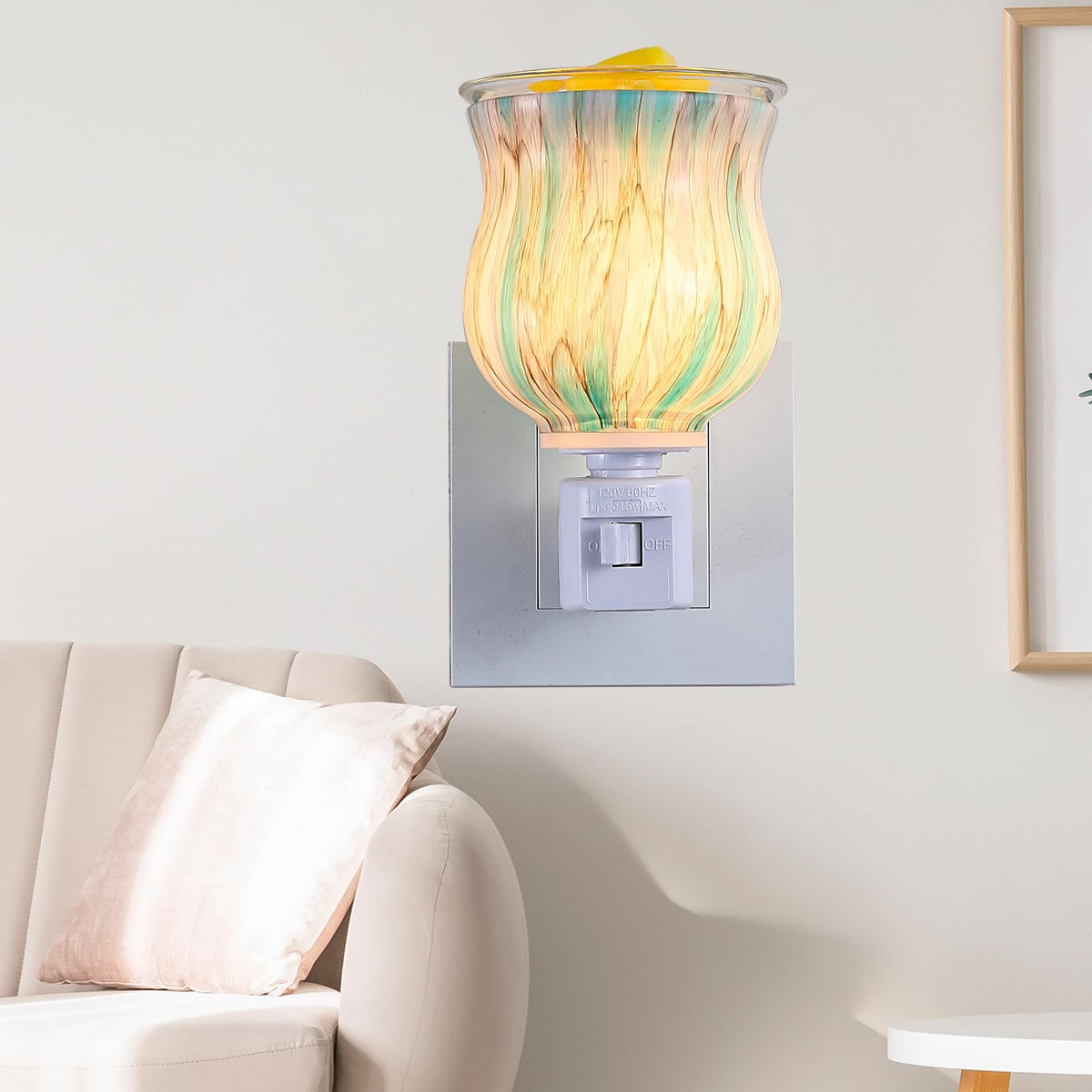 Q: What type of bulb is included with the wax warmer?A: The wax warmer comes with a G30 120V 20W bulb, which rapidly heats up to melt the wax and release pleasant fragrances throughout your room.