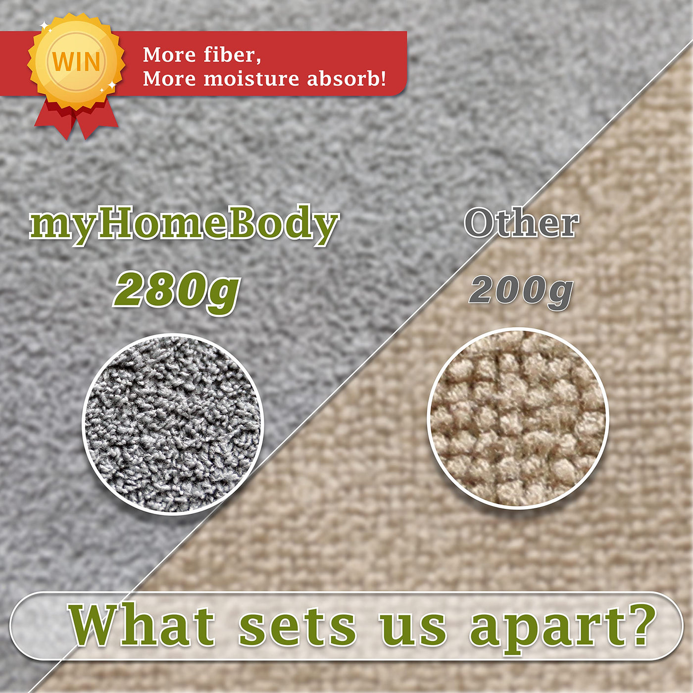 Q: How does the microfiber quality of the myHomeBody Hair Towel Wrap compare to other towels?A: The myHomeBody Hair Towel Wrap contains 280g of microfiber per cm², which is significantly higher than the average 200g per cm² found in regular towels, ensuring superior absorbency.
