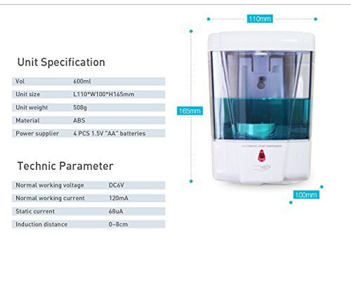 Maintenance & Attention:Please Choose A Siutable Place To Install This Dispenser,Do Not Install It On The Mirror Surface And Keep 40Cm Free Space From Sensor.1,First Time To Use This Dispenser You May Need To Operate Dispenser By Few Times To Pump The Air Out2,Use Non-Granular,Non-Foaming Liquid Soap Or Hand Sanitizer3,Please Clean The Dispenser Only By Dry Towel4,This Is Not Waterproof Product,Please Do Not Install It In Shower Room5,Clean The Liquid Outlet Reguarty To Avoid Clogging,Clean The Inside Pump By Filling Warm Water And Operate It Few Times6,Long Time No Use,Please Clean The Soap Tank And Take Out Battery.7,Low Battery Indication:The Red Led Light Blinks Very Fast To Remind You Change New Batterywhich Kind Of Soap Should I Choose?Proper Density Range Within 0-1500Mpa?S Would Be Ok. We Tested Most Of Our Daily Soap Liquid From Dishwashing To Shampoo Which Are Working Well.Pay Attention Please: 1. No Particles Included 2.Thick Or Chemical Corrosive Lotion Liquid Is More Likely To Cause Clog 3.Test With Water Before Fill Your Liquid In.