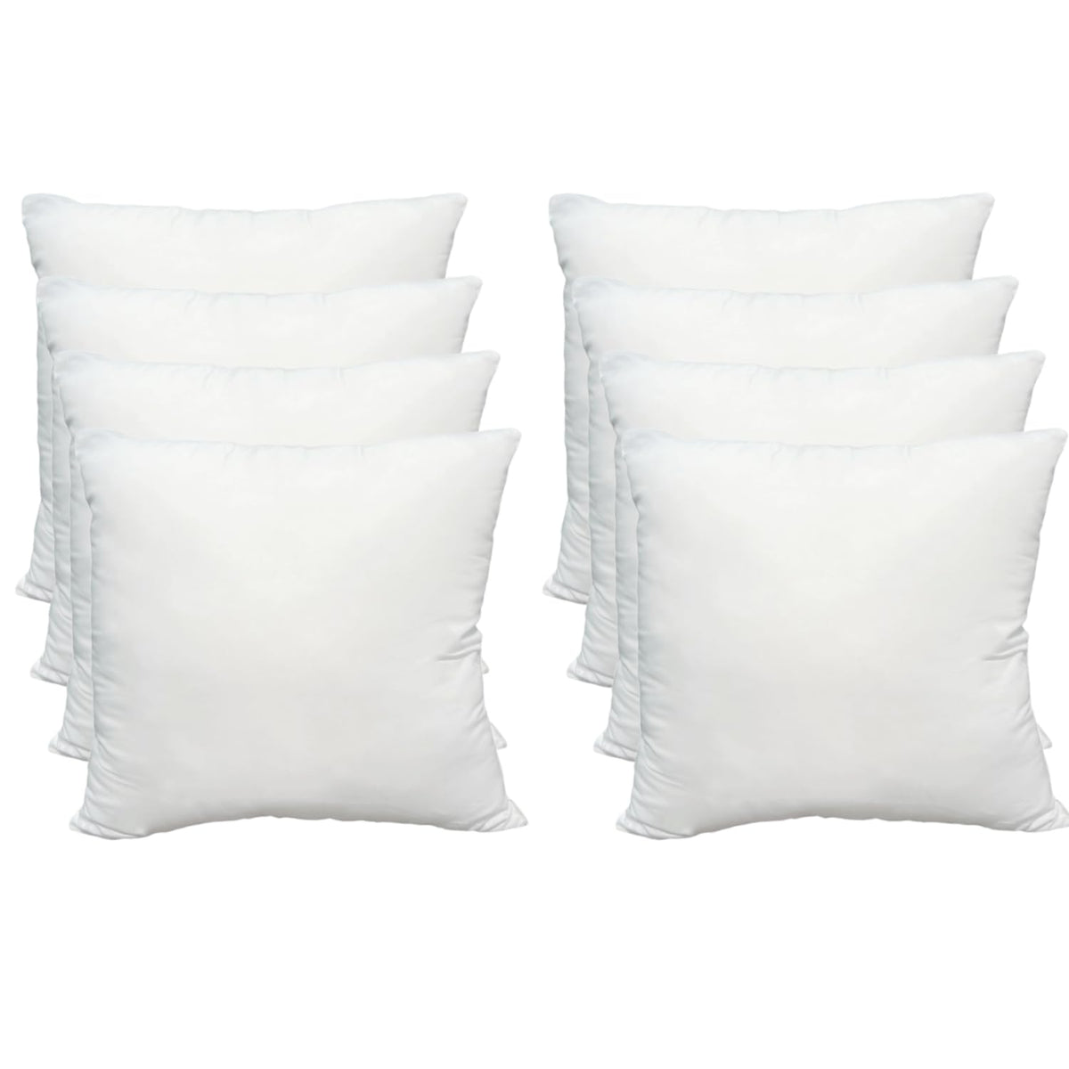 Obruosci Luxury Throw Pillow Inserts, Pack Of 8, 18 X 18 Inches Hypoallergenic Ultra Soft White Polyester Microfiber Durable Cou